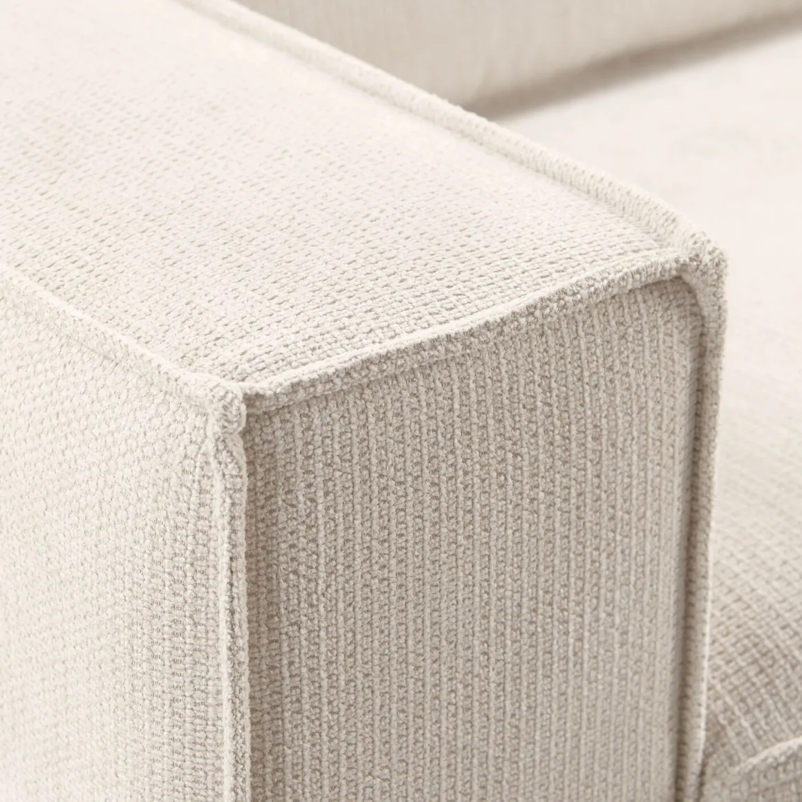 Model Barrio heeft een eigentijdse look met strakke lijnen en een stijlvolle afwerking. De bank is bekleed met een ecru gemêleerde weefstof en afgewerkt met een verfijnde vlindernaad. Deze licht meerkleurige stof heeft een grovere structuur, maar voelt tegelijkertijd heerlijk zacht aan. De zwarte metalen poten geven de bank een moderne touch en zijn eenvoudig te monteren.