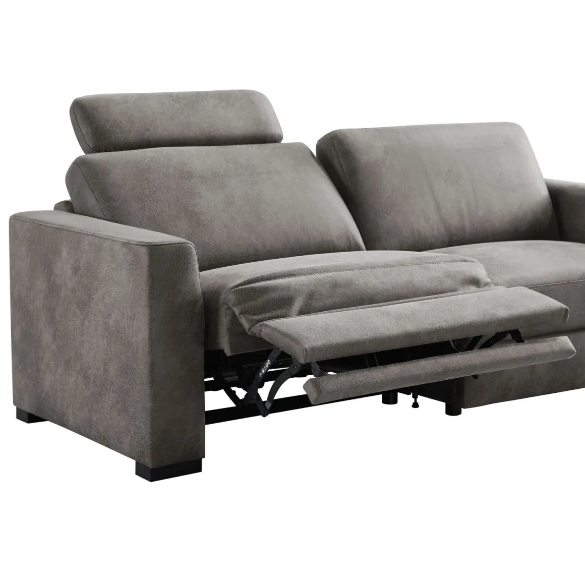 | Uitvoering | 1,5 zits arm links met 2-motorige elektrische relaxfunctie en verstelbare hoofdsteun Devano B80 + 1,5 zits arm rechts uitgevoerd in microleder dakota 68-dark grey met arm B, pocketvering met een toplaag van traagschuim in de zitting, polyetherschuim in de rug en zwarte houten poten type HF1 (hoogte 4 cm). |