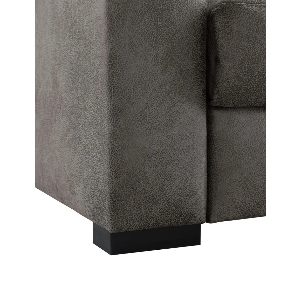 De 3-zitsbank Muscolo heeft een rustige en tijdloze uitstraling. Deze uitvoering bestaat uit twee afzonderlijke elementen die samen één royale 3-zitsbank vormen: een 1,5-zits met relaxfunctie en een 1,5-zits zonder armleuning. De bank is uitgevoerd in donkergrijs microleder dat zacht aanvoelt en dankzij de fijne structuur een luxe en duurzame indruk geeft. De diepe, warme grijstint laat zich moeiteloos combineren met uiteenlopende interieurs. Het lage ontwerp en de zwarte houten poten geven de bank een praktische en toegankelijke look.