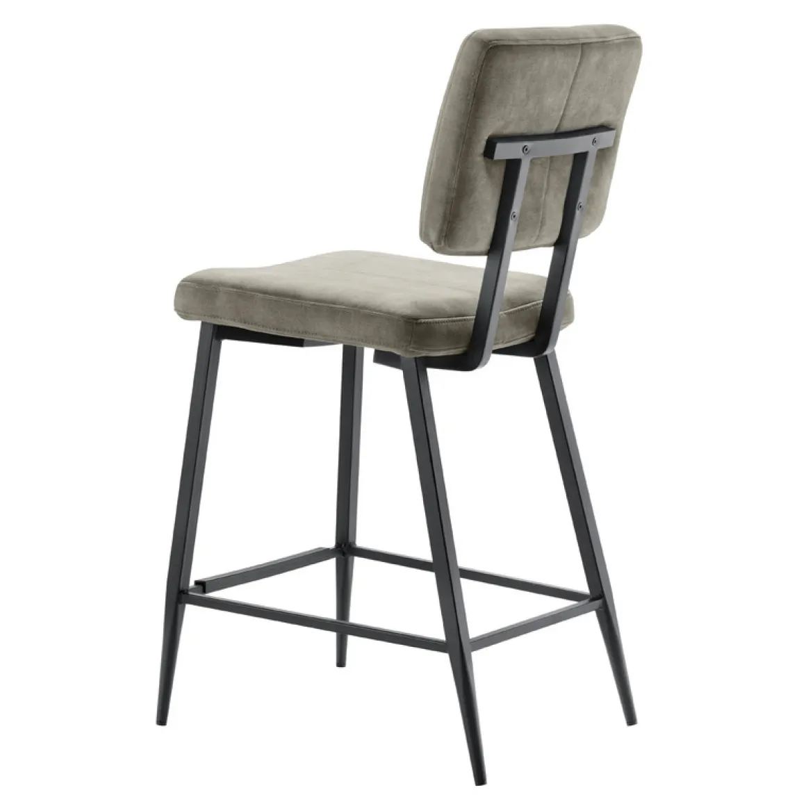 Barkruk Gento is uitgevoerd in een heerlijk zachte velvetstof in een grijze kleur. Velvetstof heeft rechtopstaande, korte vezels, die afhankelijk van de lichtinval en door over de stof te wrijven, lichter of donkerder van kleur lijkt. De stof heeft een luxe uitstraling en voelt zacht en comfortabel aan.