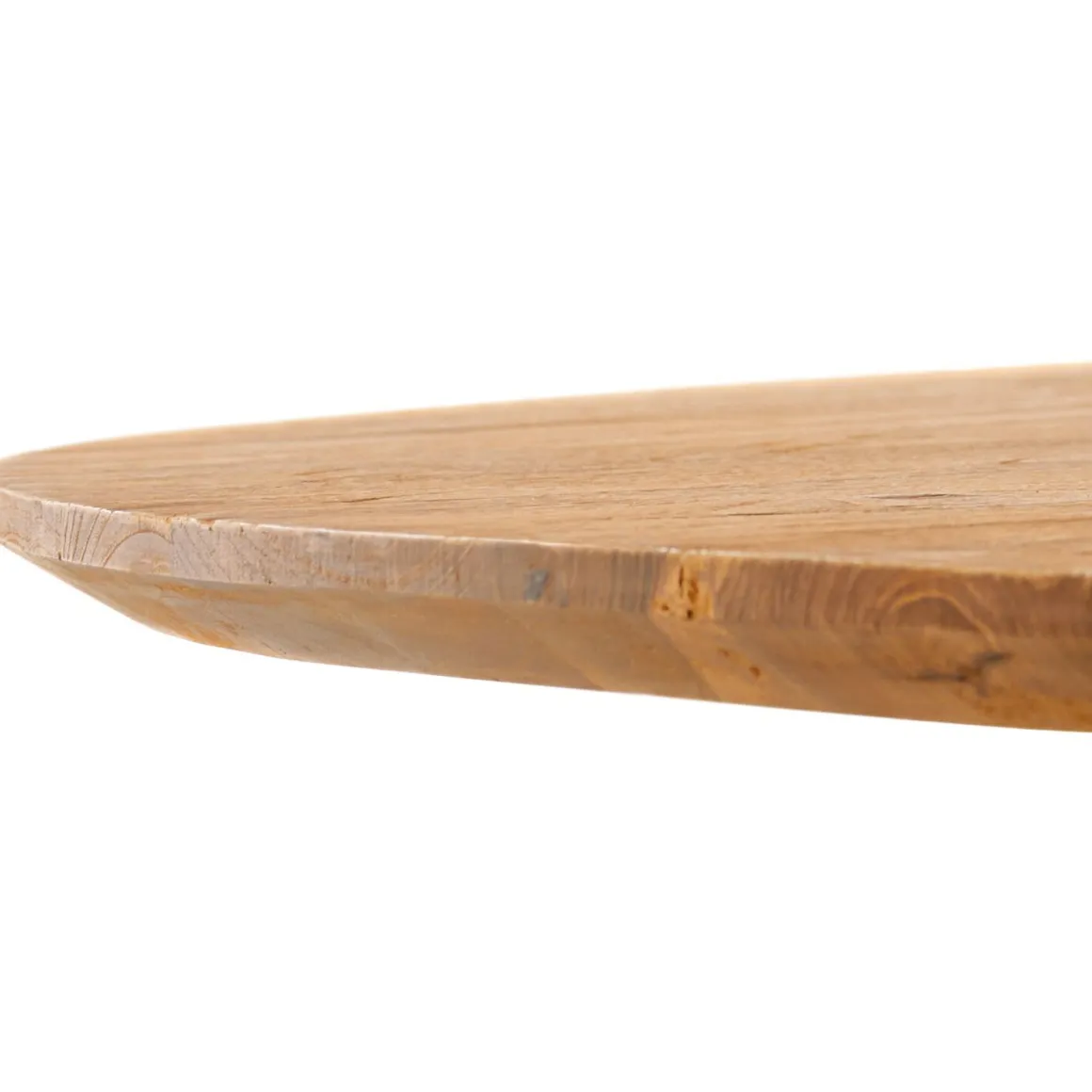 | Uitvoering | Uitgevoerd met een rond blad in recycled teak (3 cm dik) in kleur naturel brushed met een afgeschuinde bladrand met metalen poten (2×2 cm). |