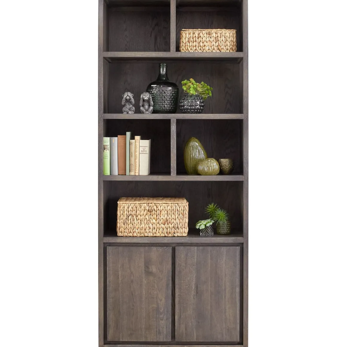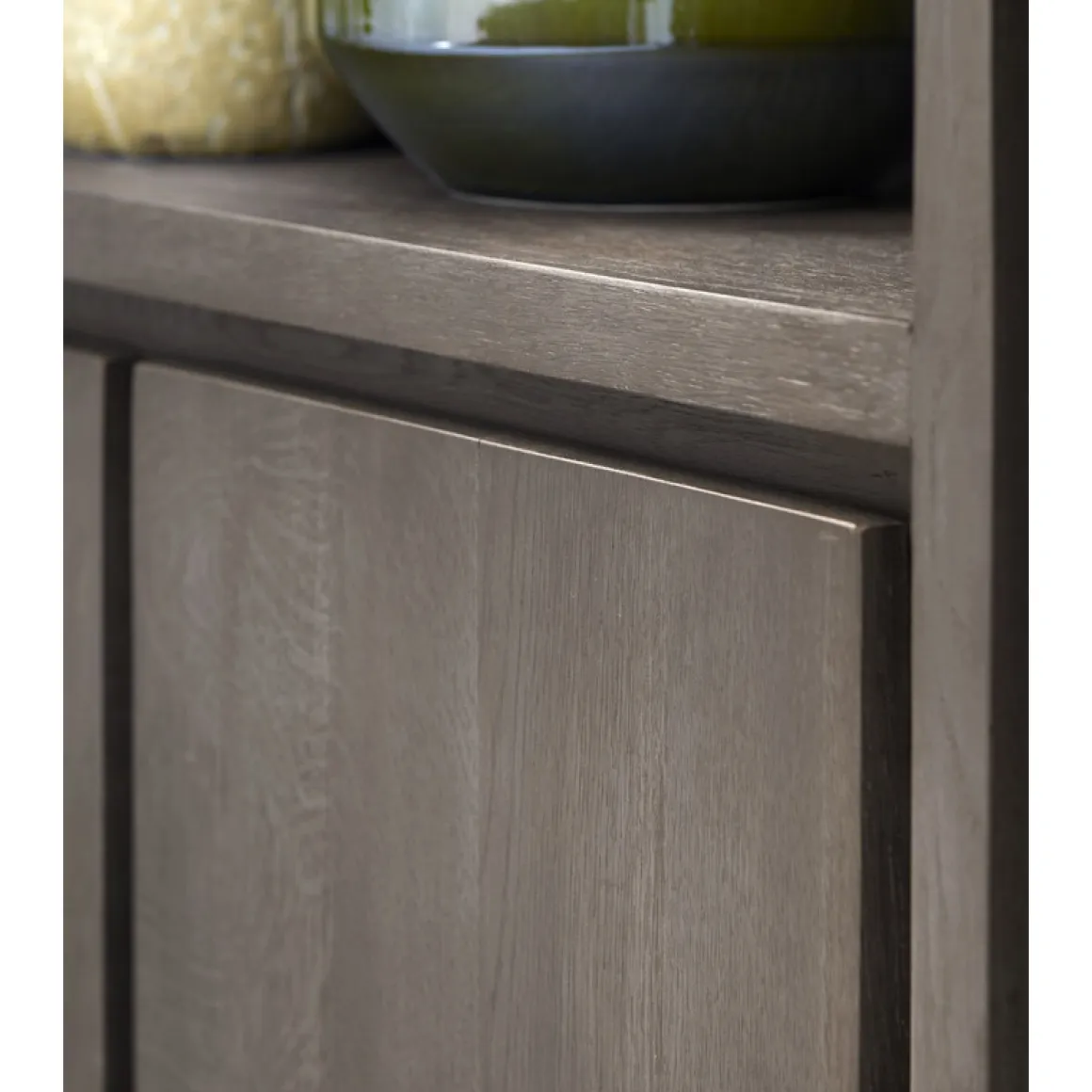 | Uitvoering | Uitgevoerd in eiken in de kleur 24.2 grafiet met 2 deuren en 6 open vakken. |