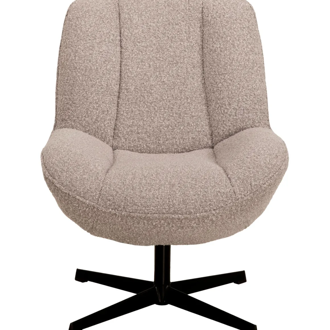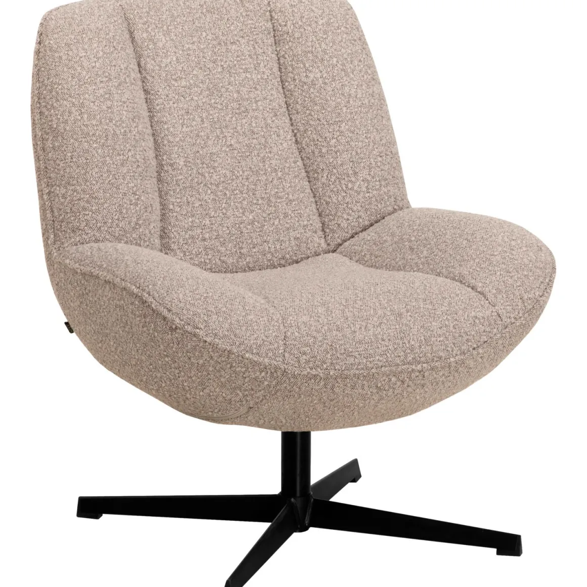 Fortenza is een compacte draaifauteuil met een ronde, vriendelijke vorm. De bouclé stof in warm beige voelt zacht aan en geeft een warme uitstraling. Het decoratieve stiksel zorgt voor een subtiele touch en maakt het ontwerp net even verfijnder. Door de ingetogen look past hij makkelijk in verschillende interieurs, zonder te veel op de voorgrond te treden.