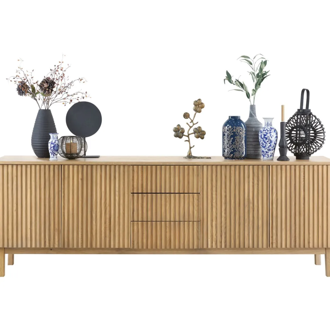 Het dressoir Arrosto uit de gelijknamige woonserie combineert vakmanschap met een verfijnde, eigentijdse stijl. Gemaakt van hoogwaardig eikenhout, straalt dit meubel een tijdloze charme uit die perfect past in eigentijdse interieurs. Verkrijgbaar in de stijlvolle kleuren Light- of Dark Roast, is deze een echte blikvanger in elke ruimte. De verfijnde latjes aan de buitenkant geven het dressoir een subtiele knipoog naar Scandinavisch design, waardoor het meubel zowel elegant als functioneel is.