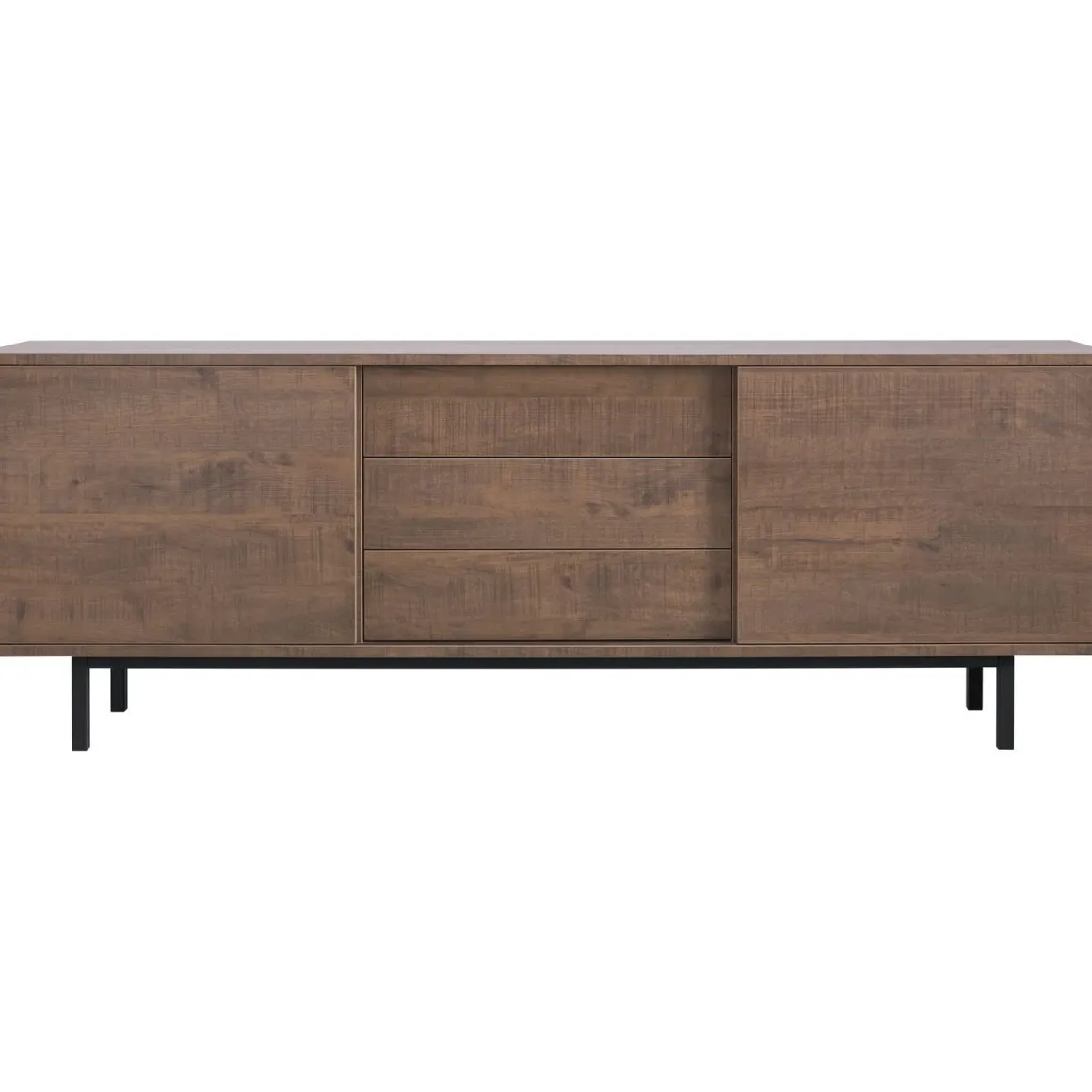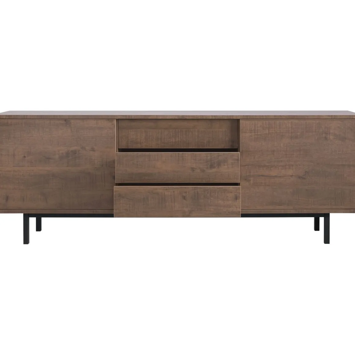 | Uitvoering | Uitgevoerd in melamine met dark mango decor in combinatie met zwart metalen poten met 2 schuifdeuren en 3 laden. |