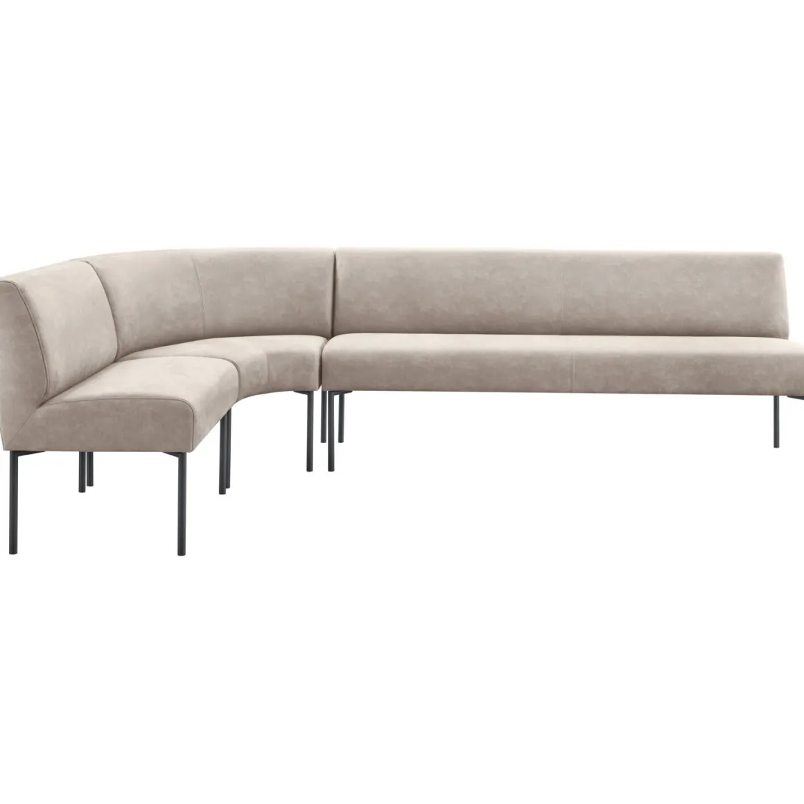 | Uitvoering | Rechtesalon 80 + hoek rond + rechtesalon 200, uitgevoerd in microleder bull 60-lightgrey met pocketvering en polyether in de zitting en zwart metalen poten. |