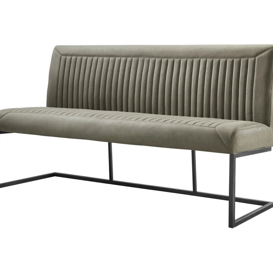 Eetbank Parantino met een breedte van 170 cm is een stoere, industriële bank met een zeer goed zitcomfort. Uitgevoerd in de kleur green met een old metal black frame. De verticale banen op de zitting en rugleuning geven model Parantino een industriële look en past daardoor in elk modern interieur. Model Parantino is ook verkrijgbaar in de kleuren cognac, grey en taupe. De eetbank is makkelijk zelf te monteren.