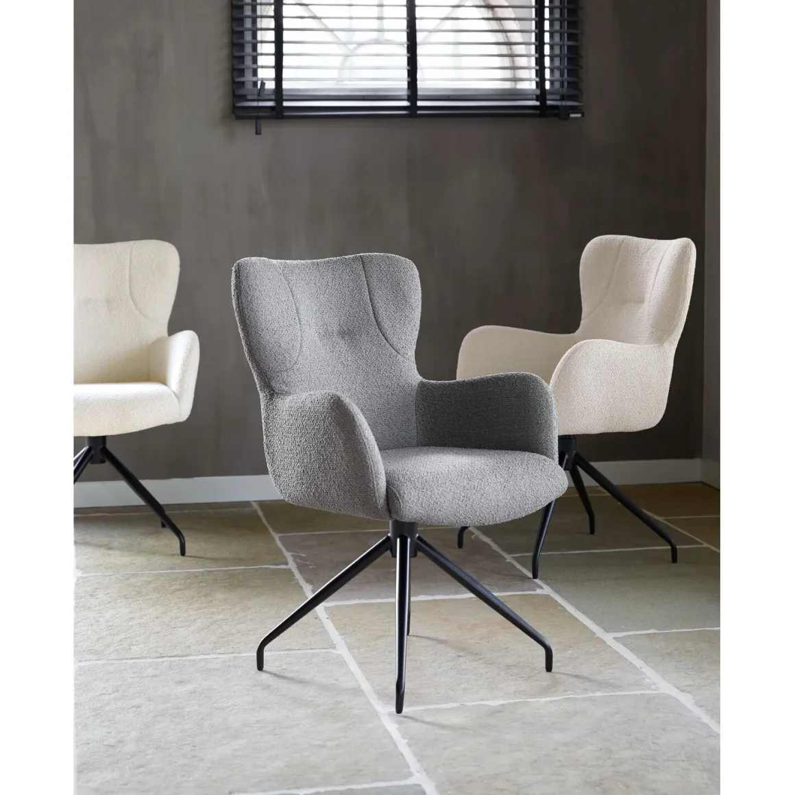 De zitting van de Lembo is uitgevoerd met polyetherschuim, een materiaal dat bekend staat om zijn praktische en comfortabele eigenschappen. Het biedt een prettige basis voor dagelijks gebruik en behoudt goed zijn vorm. Zo kun je ontspannen genieten, met de wetenschap dat deze armstoel is ontworpen met een maximale belasting van 120 kg. De stoel staat op een stevige zwarte kruispoot, die niet alleen zorgt voor een moderne uitstraling maar ook is uitgerust met een 360-graden terugdraaifunctie voor extra gebruiksgemak. Met een breedte van 61 cm is de stoel perfect geschikt voor aan de eettafel.