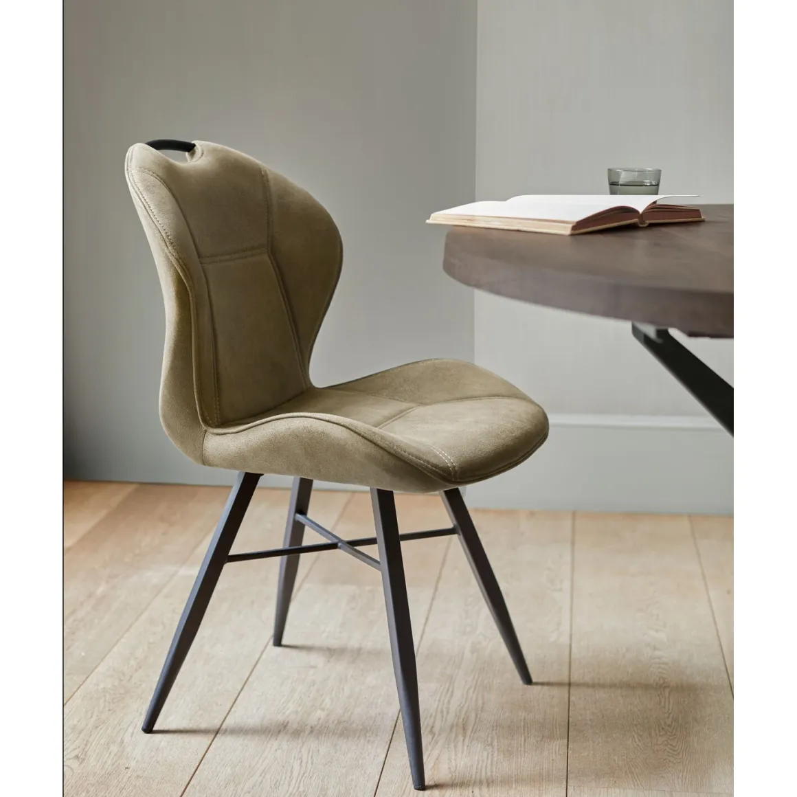 Eetkamerstoel Loana is bekleed met microvezel Zorro in de kleur moss. Microvezel is een zachte, onderhoudsvriendelijke stof. In de rug van de stoel zit een handvat verwerkt, wat de stoel goed verplaatsbaar maakt. De combinatie met de zwart metalen poten geven de stoel een moderne uitstraling, wat perfect past in verschillende interieurstijlen. Let wel: deze stoel wordt ongemonteerd geleverd, uiteraard met montagehandleiding bijgevoegd.