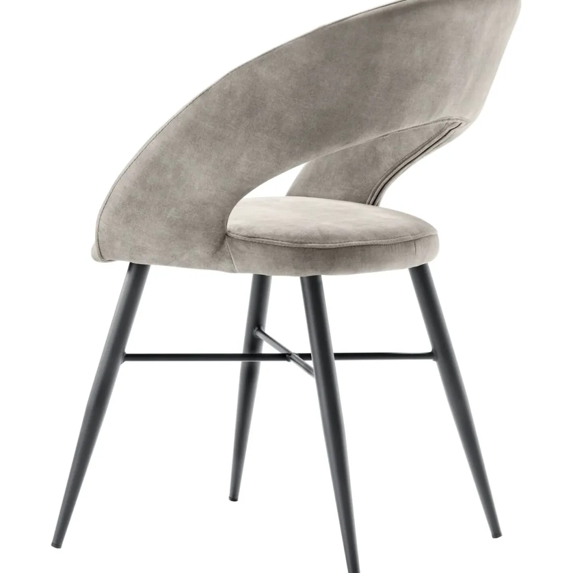 Stoel Marasino is uitgevoerd in een heerlijk zachte velvetstof in een licht grijze kleur. Velvetstof heeft rechtopstaande, korte vezels, die afhankelijk van de lichtinval en door over de stof te wrijven, lichter of donkerder van kleur lijkt. De stof heeft een luxe uitstraling en voelt zacht en comfortabel aan.