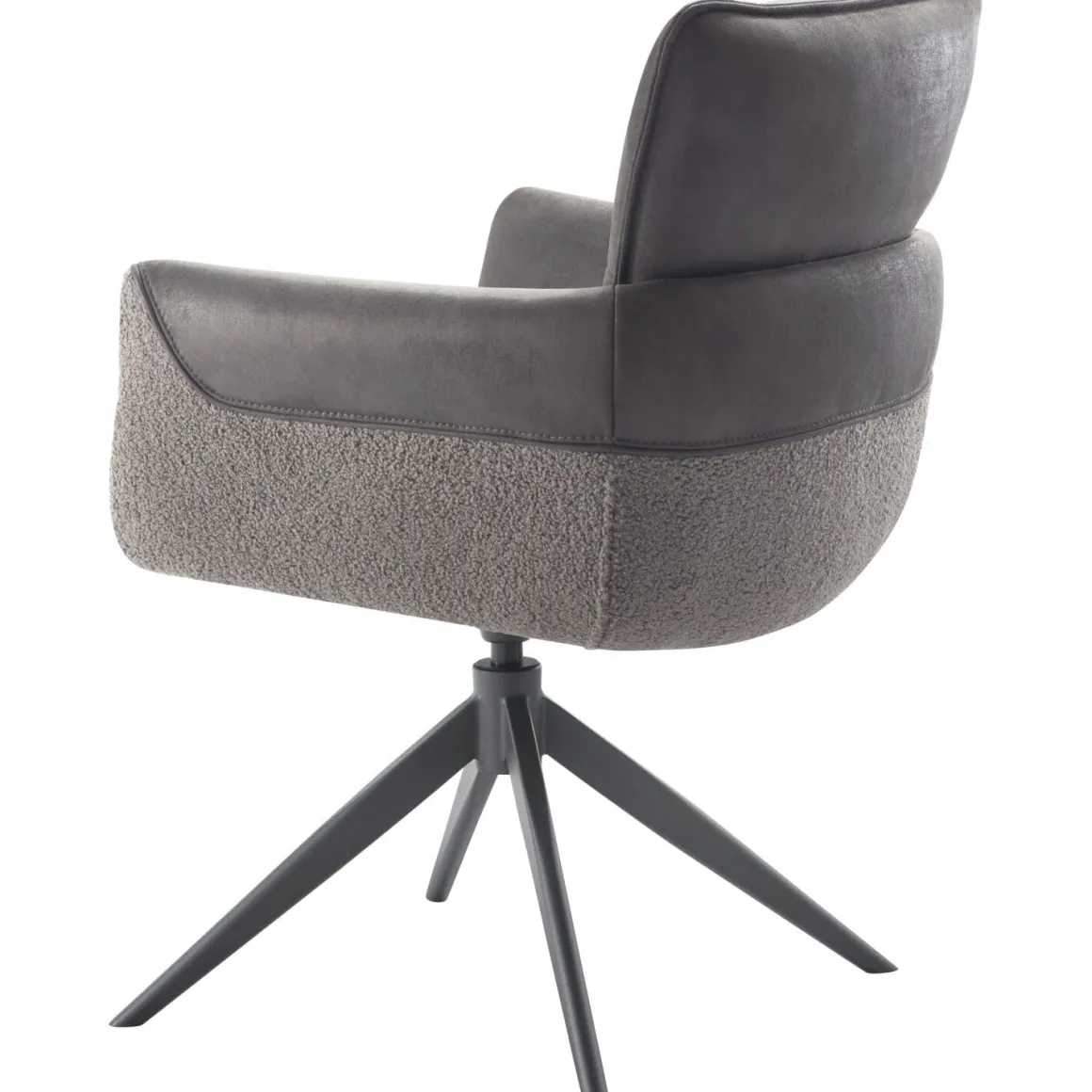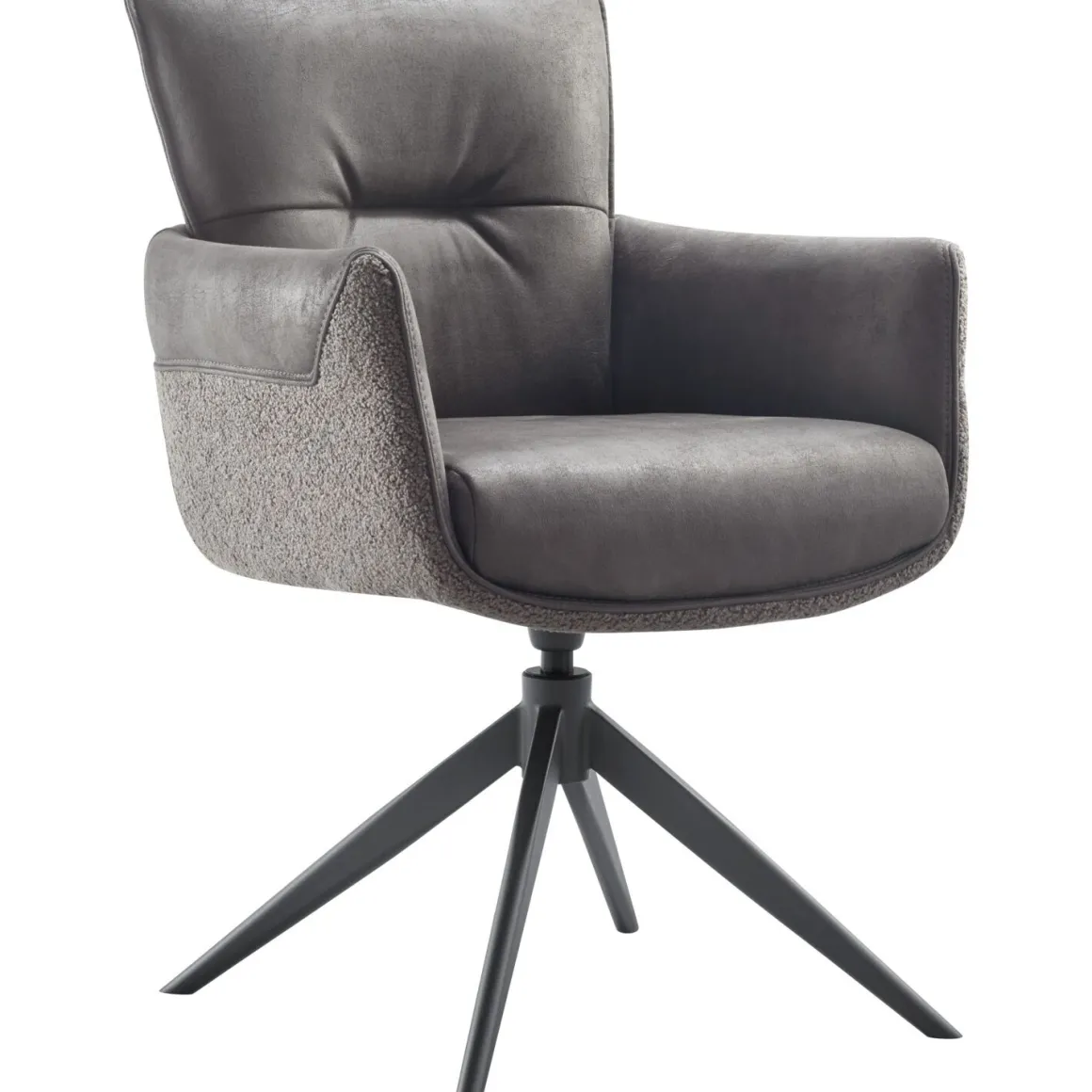 | Uitvoering | Uitgevoerd in microleder bull 67-antracite (binnenzijde + deels buitenzijde kuip) en stof teddy-459 (onderste rand buitenzijde kuip) met metalen kruispoot in de kleur 62-antraciet, met terugdraaifunctie. |