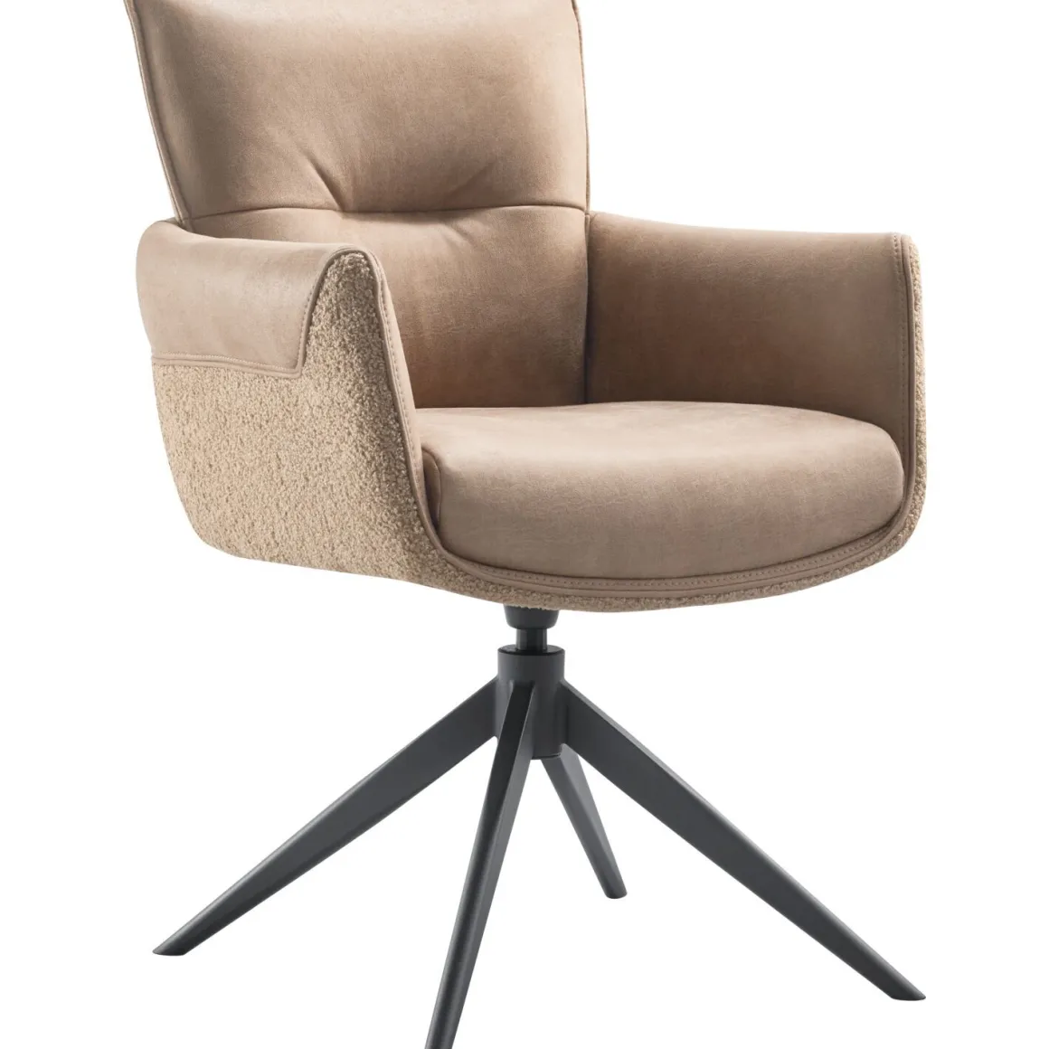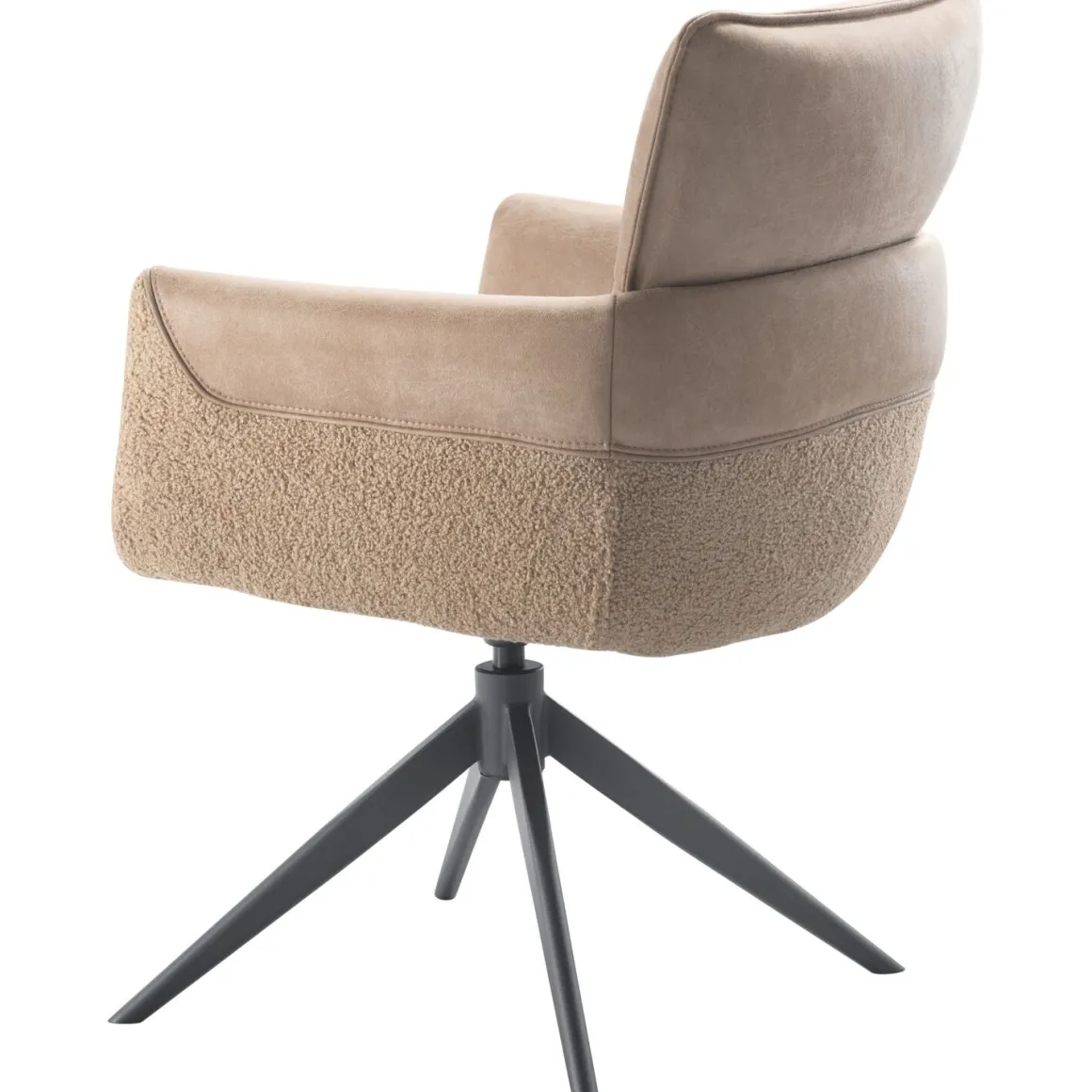 | Uitvoering | Uitgevoerd in microleder bull 10-liver (binnenzijde + deels buitenzijde kuip) en stof teddy-441 (onderste rand buitenzijde kuip) met metalen kruispoot in de kleur 62-antraciet, met terugdraaifunctie. |