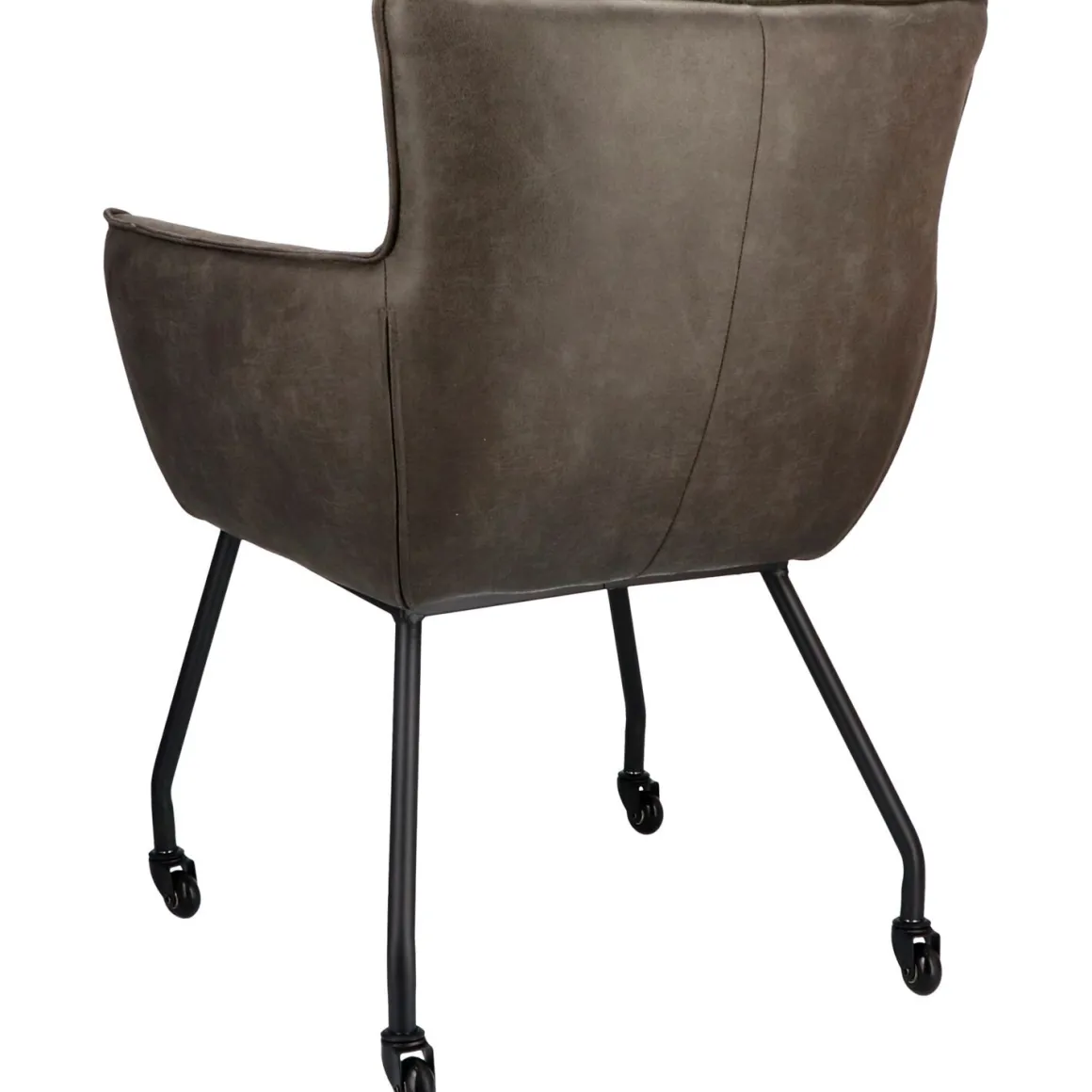 Novile armstoel in donkergrijs microleder met zwarte skatewielen