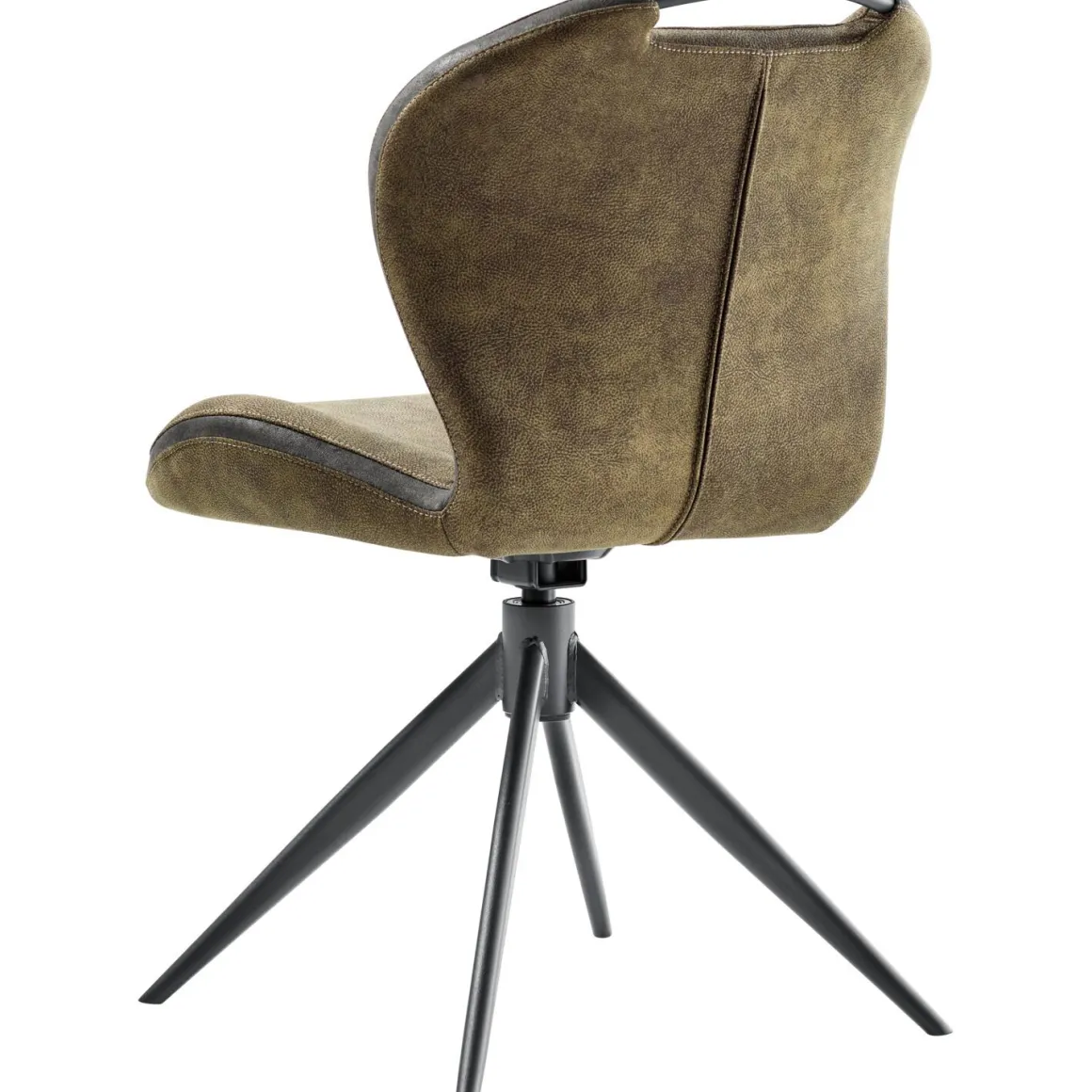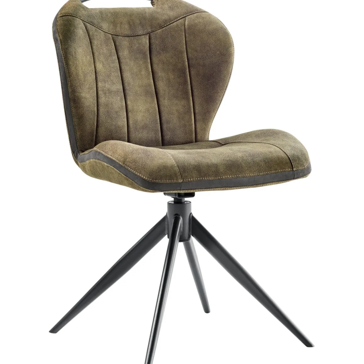De Tantini-eetstoel is bekleed met microvezel in een groene tint, die zacht aanvoelt en makkelijk te onderhouden is. Het retrostiksel en de accentband geven een subtiel contrast en benadrukken de karaktervolle vorm van de rug. De zitting en rug vormen één comfortabel geheel, terwijl de handgreep bovenaan de rugleuning het verplaatsen van de stoel gemakkelijk maakt. Het zwarte metalen onderstel biedt extra stevigheid en stabiliteit. Dankzij de draaifunctie met autoreturn kun je de stoel soepel in alle richtingen draaien, terwijl hij automatisch terugdraait naar de uitgangspositie wanneer je opstaat.