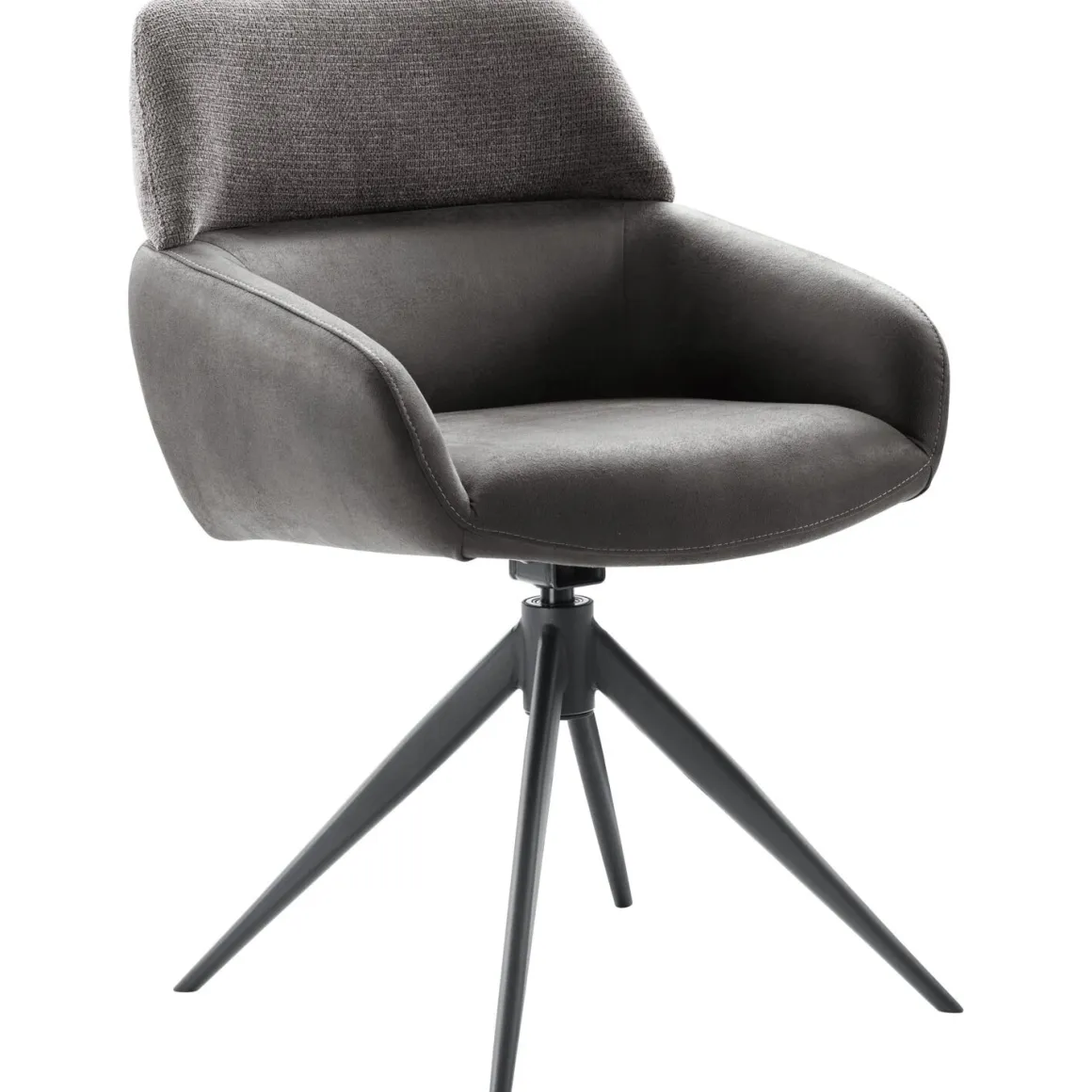 Karaktervolle armstoel Veda met combinatie van microvezel en stof in antraciet