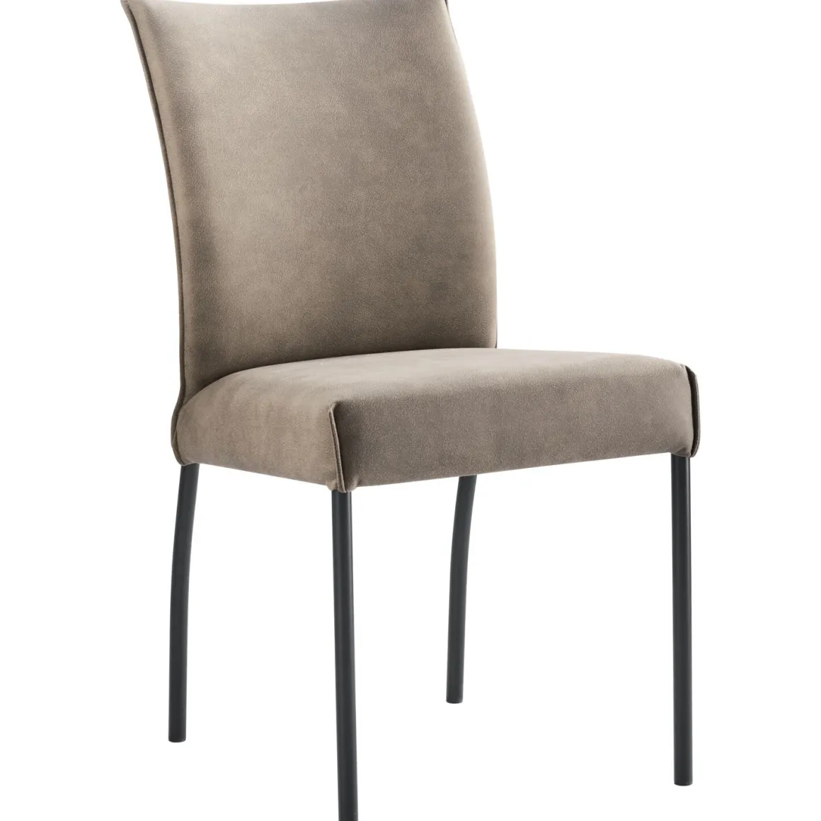Vitale is een ranke eetkamerstoel met een elegante uitstraling. De stoel is uitgevoerd in een grijs-beige microvezelstof die erg geschikt is voor intensief gebruik. De stof is opgebouwd uit synthetische vezels waardoor deze erg sterk is. Desondanks voelt hij erg zacht aan. Bovendien is de stof makkelijk in onderhoud. De stoel is standaard voorzien van een gesloten vlindernaad, dit accentueert de belijning van de eetkamerstoel. Op de achterzijde van de rugleuning zit een ritssluiting in dezelfde kleur als de stof.