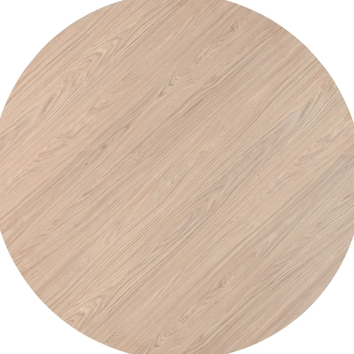 | Uitvoering | Uitgevoerd met een rond blad in melamine in de kleur misty oak decor met rand in misty oak en een metalen spinpoot in de kleur stone grey. |