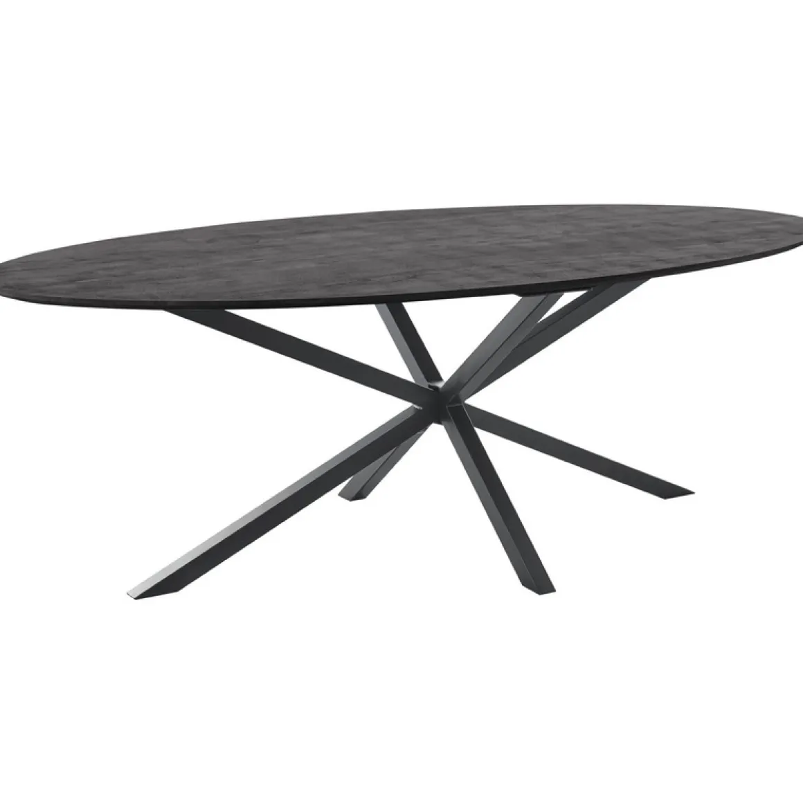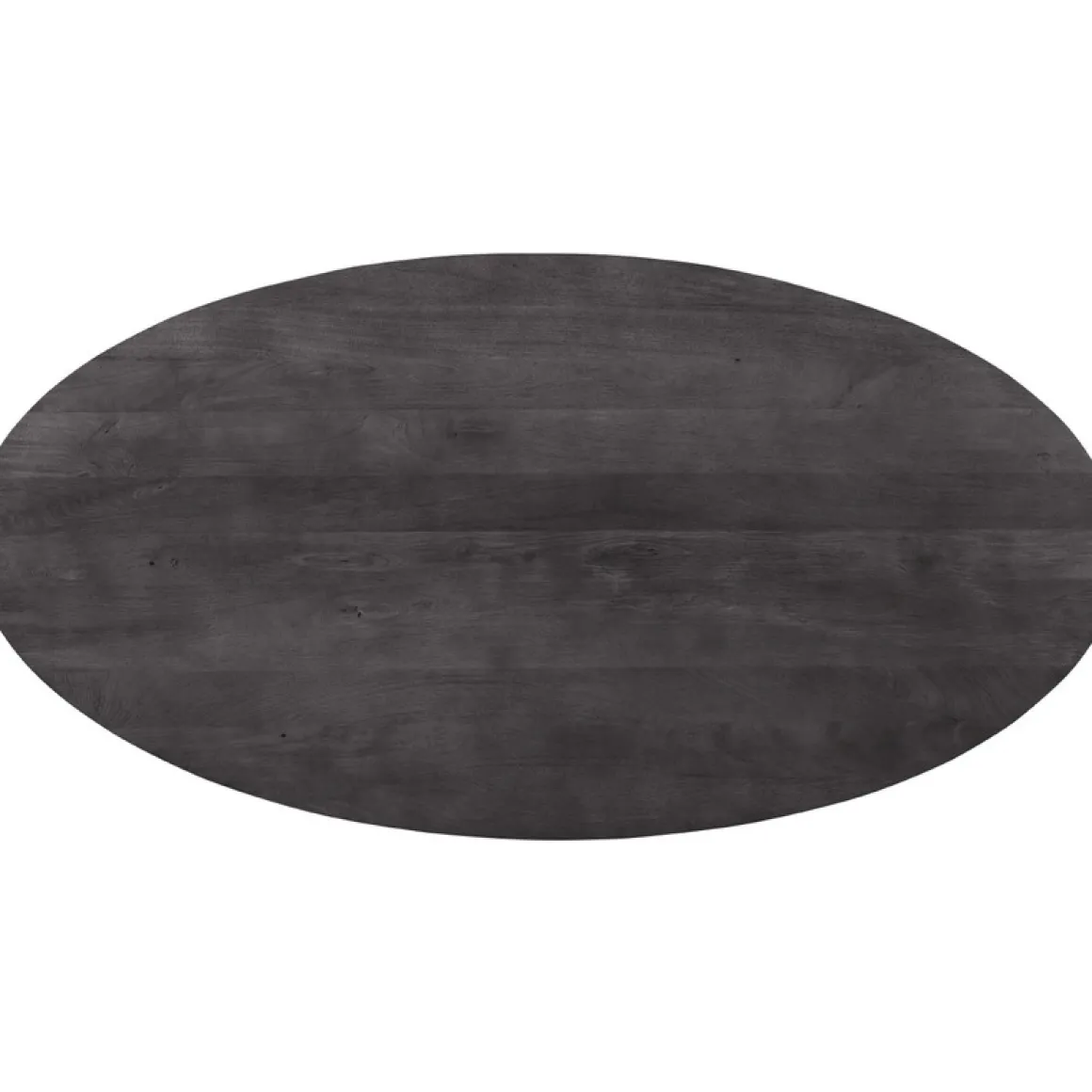 | Uitvoering | Uitgevoerd met een ovaal blad (3 cm dik) in gezandstraald mangohout in de kleur deep black met een afgeschuinde bladrand en een zwarte metalen spinpoot. |
