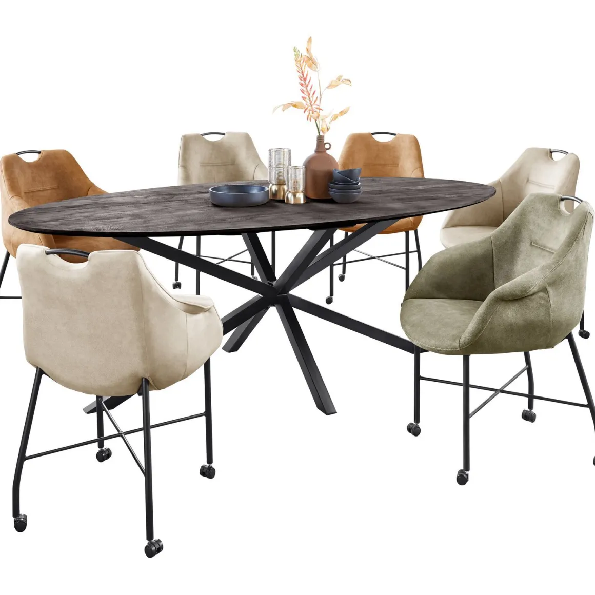 Stijlvolle ovale eettafel Piastra 230×105 cm in zwart mangohout
