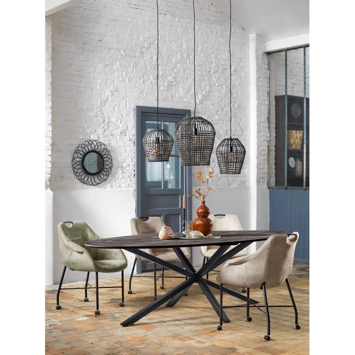 Transformeer jouw eetkamer met onze eettafel Piastra. Vervaardigd uit zwart mangohout (gezandstraald) straalt deze tafel warmte en karakter uit. Het mangohout, bekend om zijn duurzaamheid en warme tinten, voegt een natuurlijk element toe aan je ruimte terwijl de zwarte metalen spinpoot een eigentijdse uitstraling geeft. Door het mangohout zwart te kleuren voeg je een krachtig design element toe. De houtnerven en nuances maken elk meubel uniek en dragen bij aan een karaktervolle uitstraling.