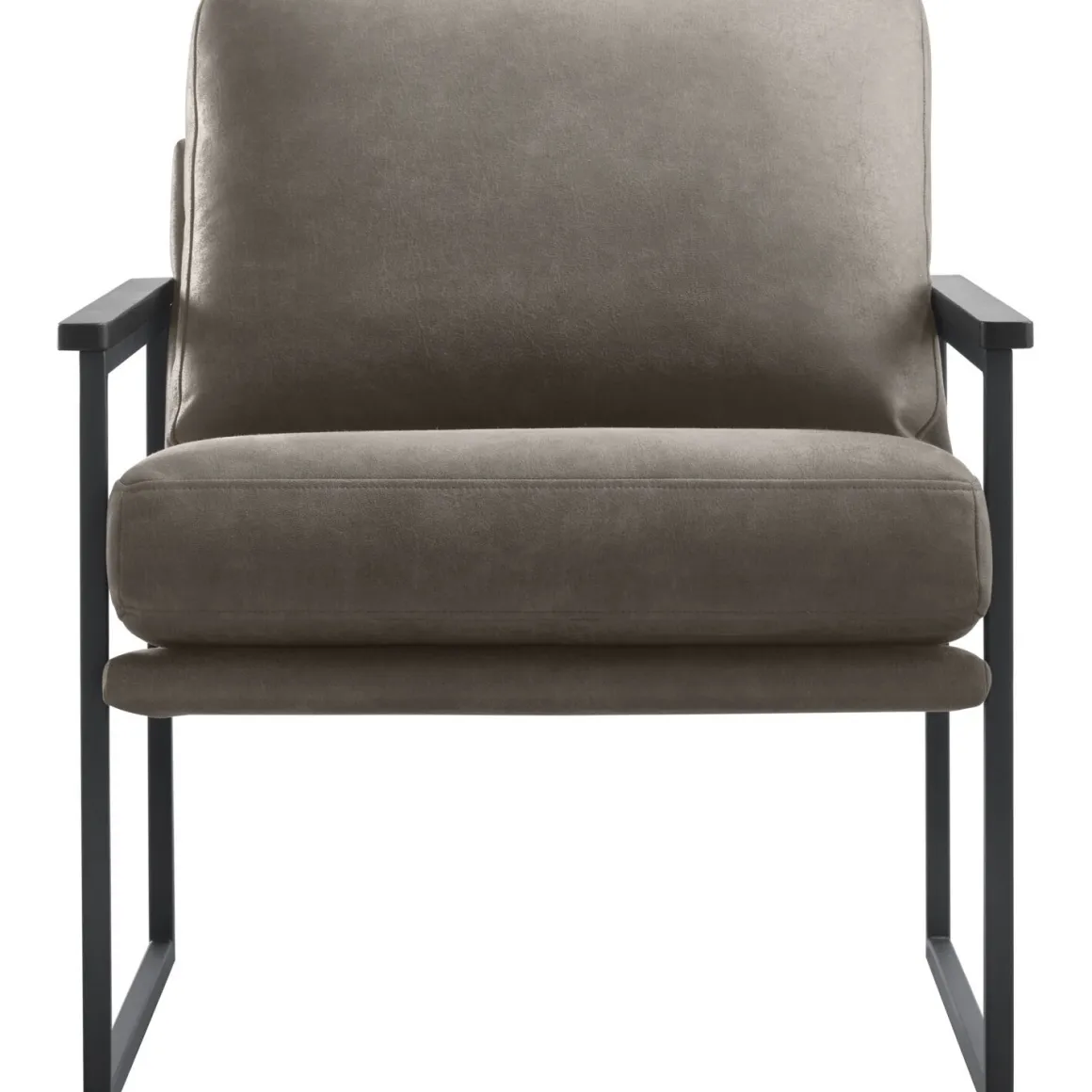 Fauteuil Claut brengt moderne eenvoud samen met warme details, passend bij een Scandinavisch geïnspireerd design. De slanke vormgeving en open armleuningen zorgen voor een luchtig, eigentijds silhouet. De metalen armleuningen zijn afgewerkt met een zwart gelakt houten legger, een stijlvol detail dat ook prettig aanvoelt voor je arm. De bekleding in donkergrijs microleder, een mix van leervezels en microvezelstof, combineert de luxe uitstraling van leer met het zachte karakter van stof.