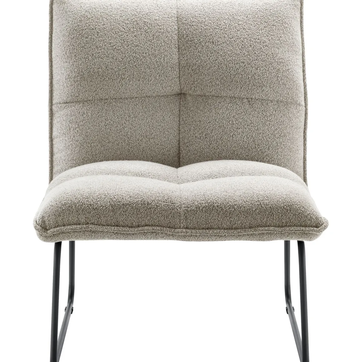 | Uitvoering | Uitgevoerd in stof bouclé MA-4405 dark grey met zwart metalen sledepoot. OP=OP |