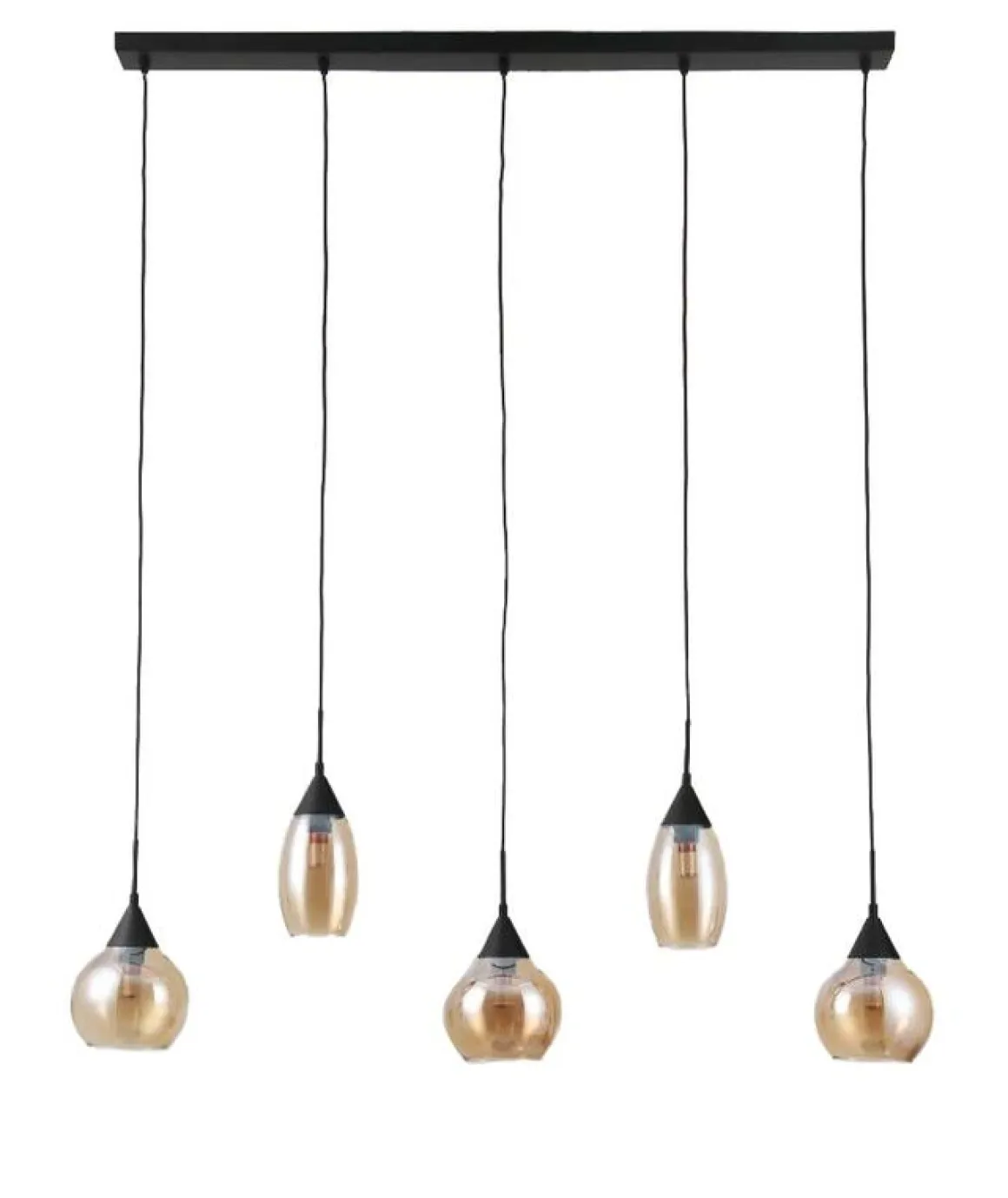 Hanglamp zwart amber glas 5-lichts – Lungo
