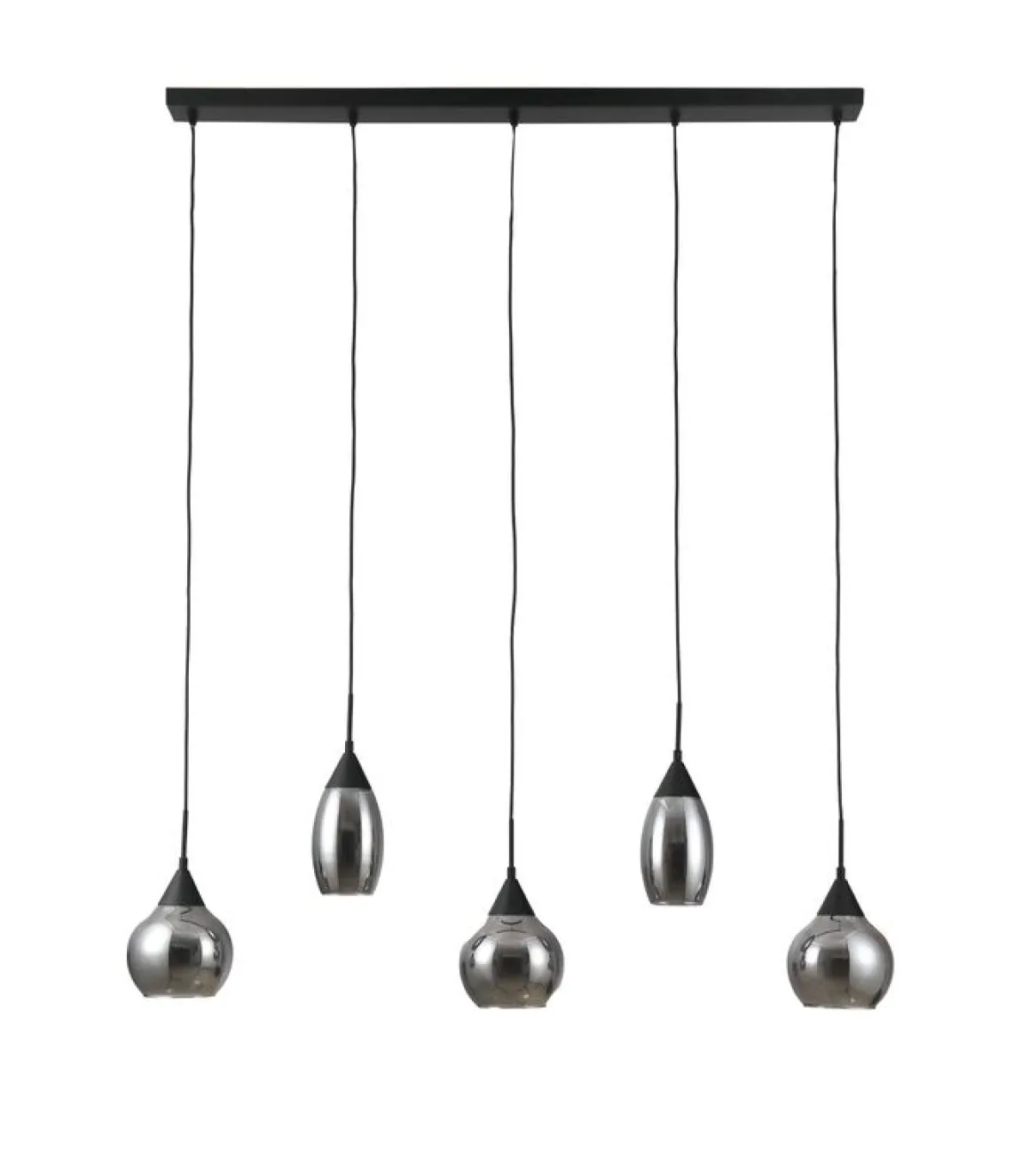 Hanglamp zwart smoke glas 5-lichts – Lungo