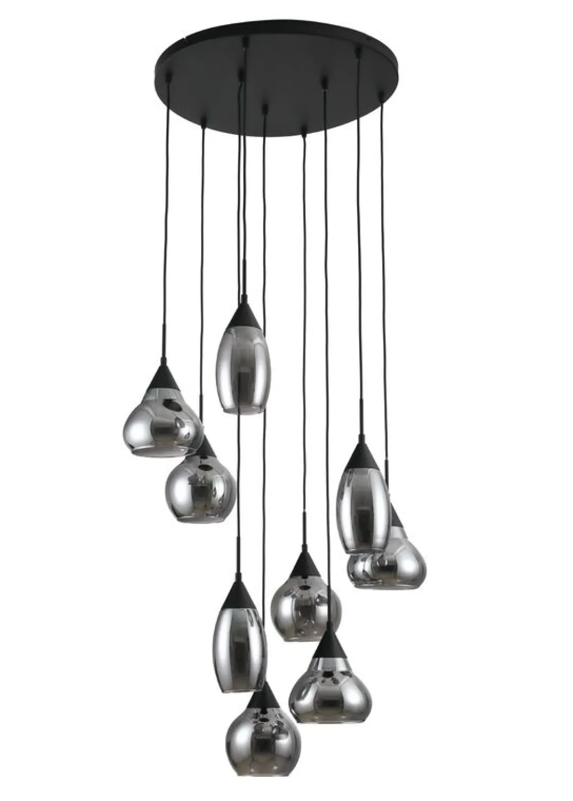 Hanglamp zwart smoke glas 9-lichts – Lungo