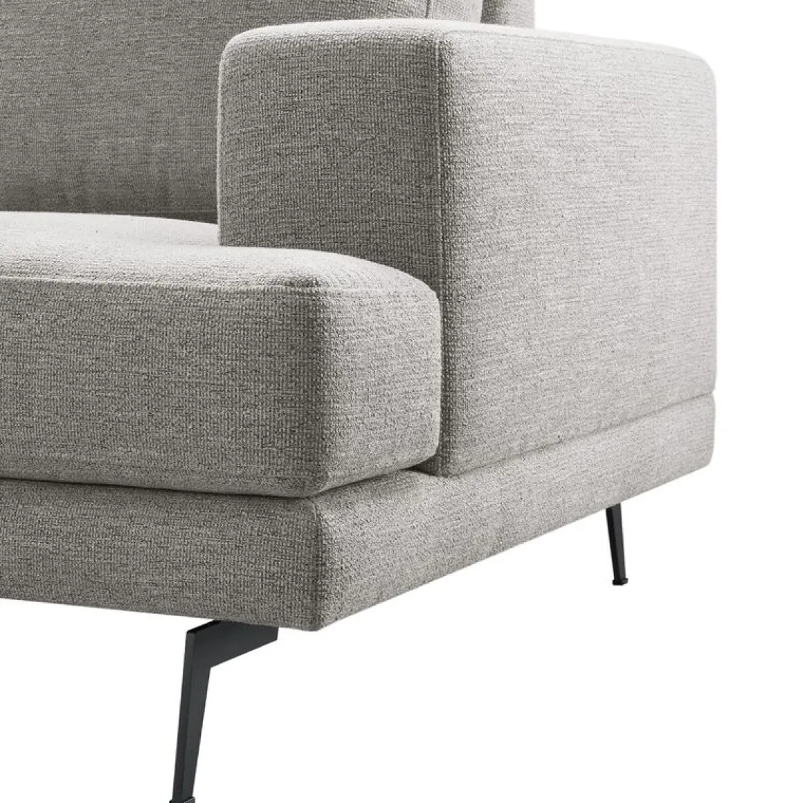 Model Acante kenmerkt zich door zijn eigentijdse uitstraling, waardoor deze in vrijwel ieder interieur past. De bank is gestoffeerd met een grijs gemêleerde weefstof. Door het gebruik van verschillende garens en tinten ontstaat een licht meerkleurige kwaliteit met een ietwat grovere structuur die zacht en vol aanvoelt. De hoge, metalen poten zorgen voor een moderne en luchtige uitstraling.