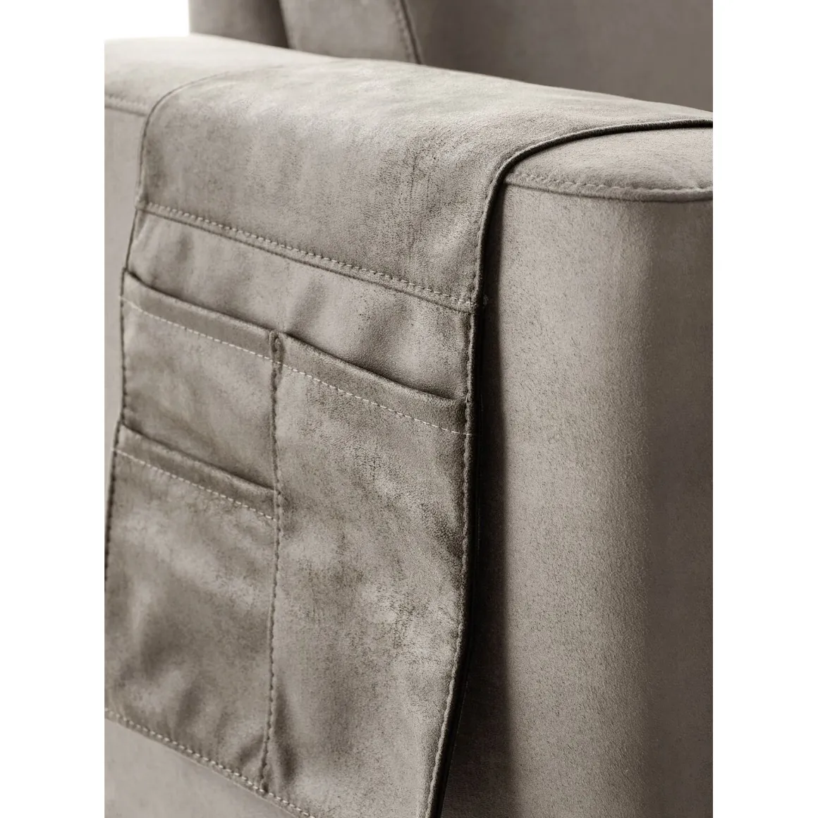 De grijze hoekbank Moscato is bekleed met microleder, een duurzaam en onderhoudsvriendelijk materiaal dat bestaat uit een combinatie van een onderlaag van leervezels en een bovenlaag van microvezelstof met een geschuurd effect. Dit maakt de stof niet alleen zacht en comfortabel, maar ook bestand tegen slijtage en gemakkelijk te reinigen. Het biedt de uitstraling van echt leer, maar met de voordelen van een lichtere, betaalbare en milieuvriendelijkere optie.