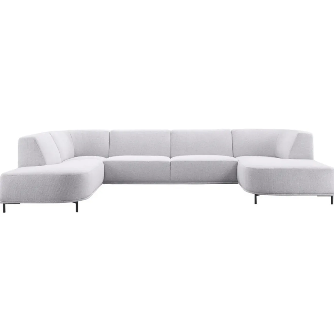 Op zoek naar een stijlvolle en comfortabele hoekbank? Dan is onze lichtgrijze hoekbank Pantini de perfecte keuze voor jou! De hoekbank is een prachtig voorbeeld waarin stijl en comfort samensmelten. Stijl in de vorm van de dunne “plint” in combinatie met de volle zitting en rugleuning en de zwarte metalen poten. De bank is bekleed met een lichtgrijs gemĂȘleerde weefstof. Door het gebruik van verschillende garens en tinten ontstaat een licht meerkleurige kwaliteit met een ietwat grovere structuur die zacht en vol aanvoelt. In combinatie met de ronde vormen van de chaise longue en het eiland geeft dit de bank een trendy en zachte uitstraling.