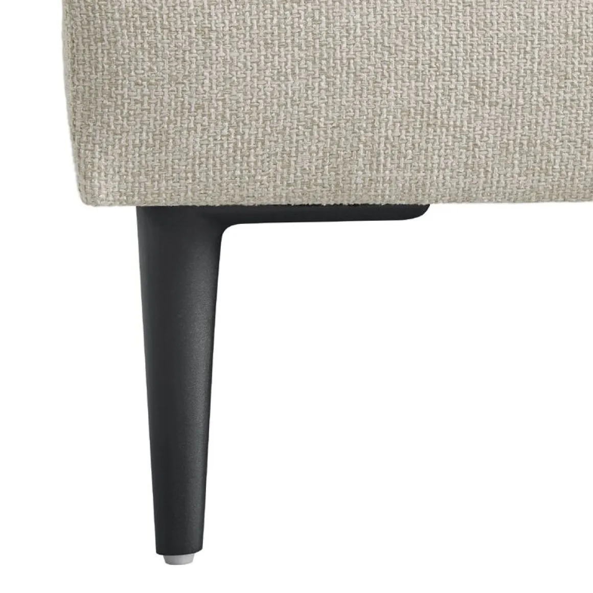 | Uitvoering | Longchair arm links + 2,5 zits zonder armen + hoek met eiland groot rechts in stof rate 01-naturel met HR-koudschuim in de zitting, HR-koudschuim met een afdeklaag van polyetherschuim- en siliconenvlokken in de rug en zwarte metalen poten, type M-14 (13 cm). |