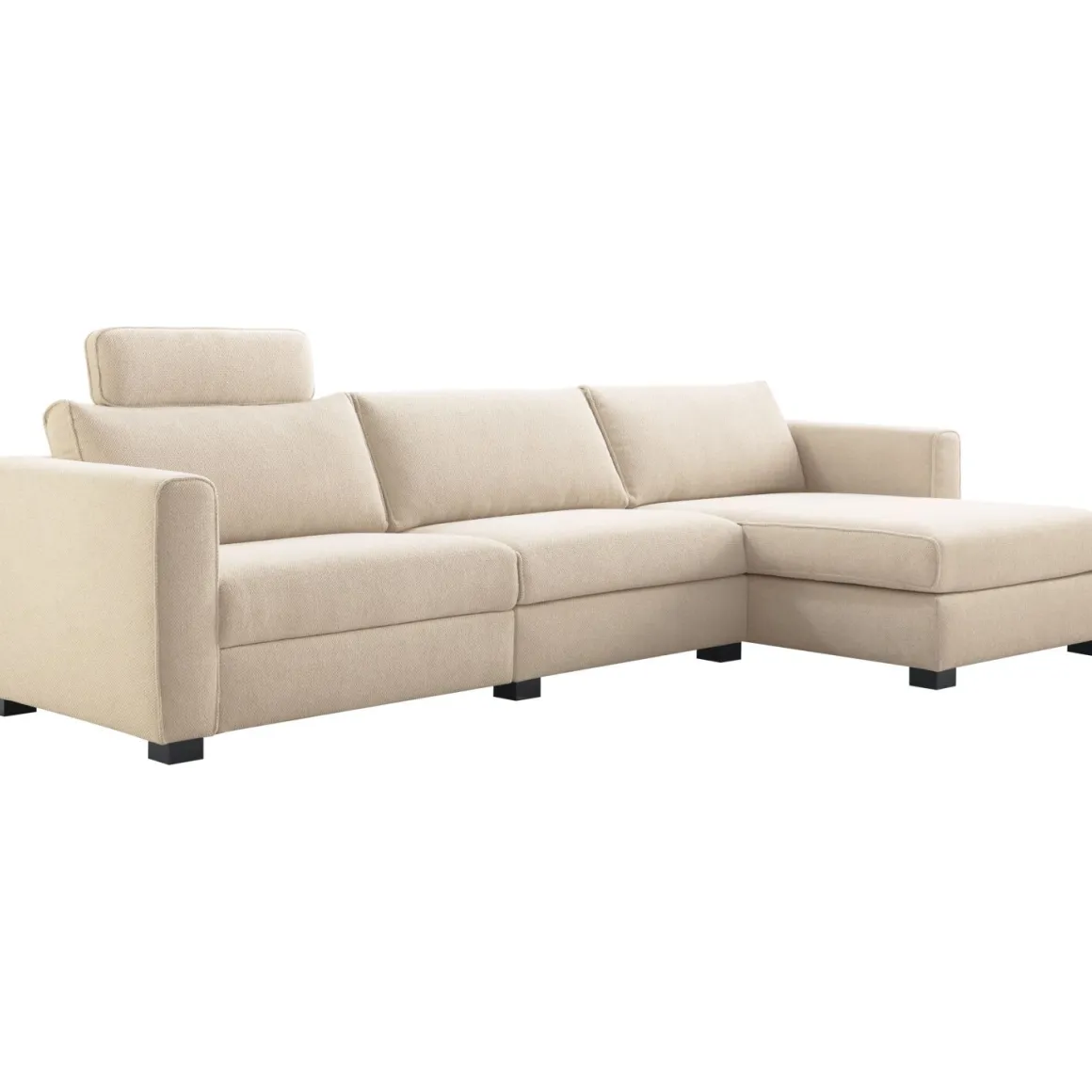 Hoekbank Licato in ecru weefstof met elektrische relaxfunctie