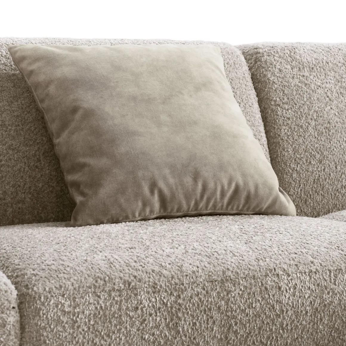 Trendy design hoekbank Pantini met ronde vormen - Velvet plint in een beige-grijze tint