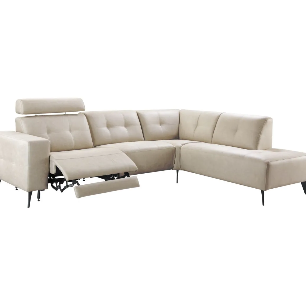 Hoekbank Piorino in grijsbeige microvezel met relaxfunctie en verfijnde stiksels - Met elektrische relaxfunctie voor rug, voet en hoofdsteun