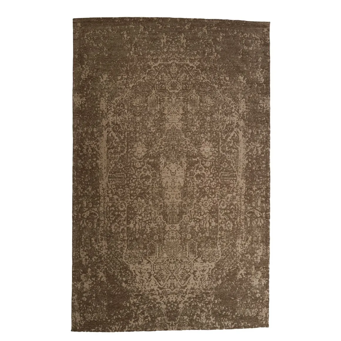 | Uitvoering | Uitgevoerd in de kleur earth. Materiaalsoort: 100% polyester chenille. Afwerking: backing (rug) 100% katoen. Poolhoogte: 7 mm. |