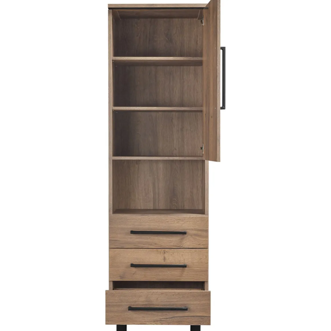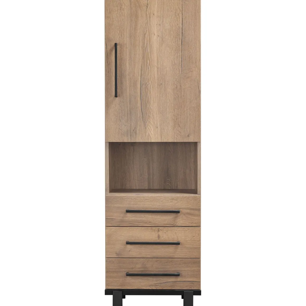 - Met 1 deur, 3 laden en 1 open vak