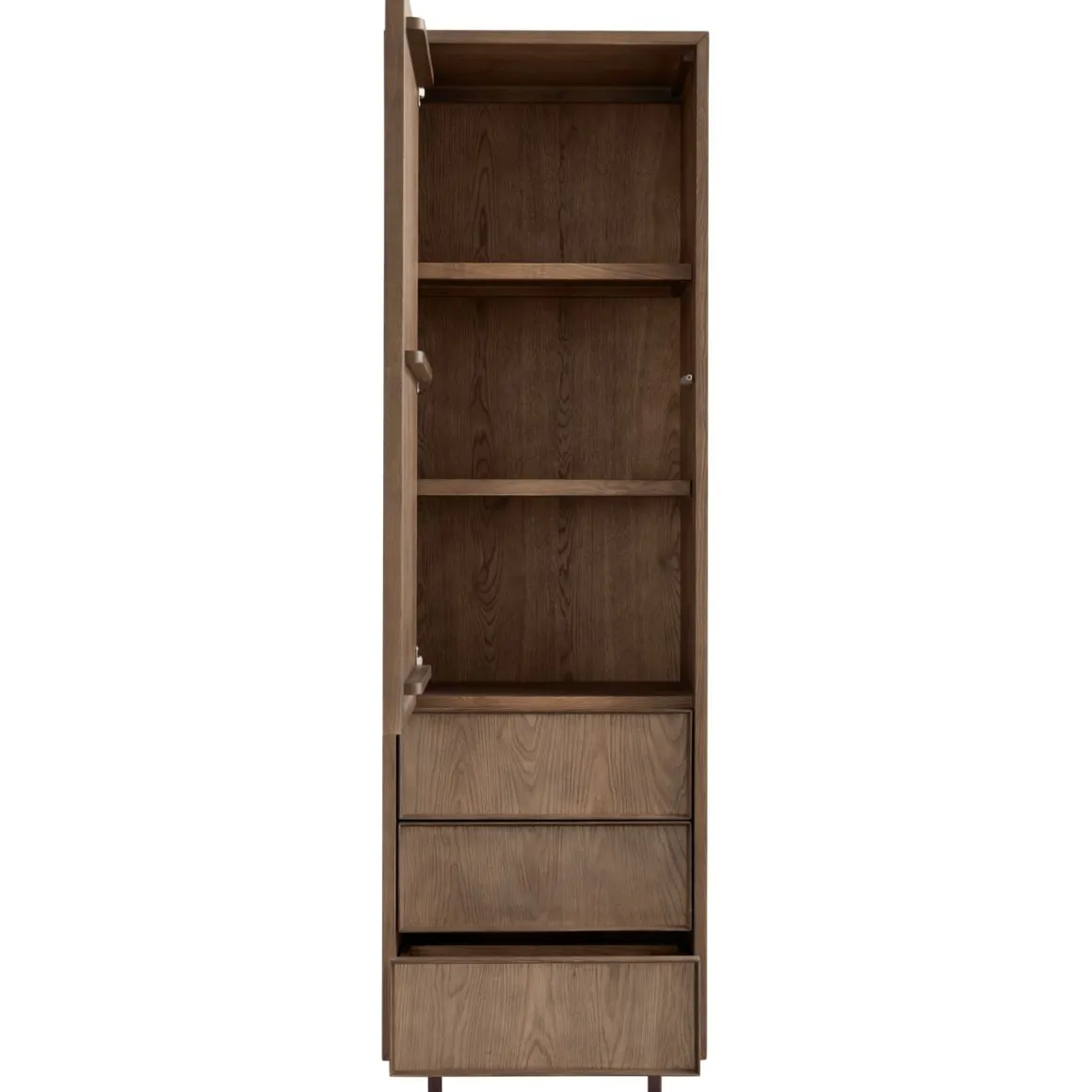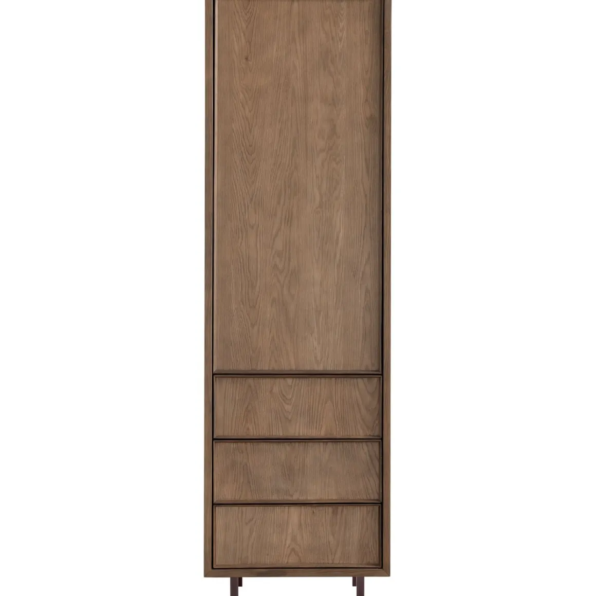 Calvo combineert modern, Scandinavisch design met een vleugje retro. De afwerking in fineer van echt eikenhout zorgt voor de natuurlijke uitstraling van massief hout. De warme bruine houtkleur geeft de serie een stijlvolle en rustige uitstraling, terwijl de matte lakafwerking de houtnerf mooi laat uitkomen. De strakke belijning en verfijnde randen rondom de deuren zorgen voor een stijlvol geheel met een subtiel diepte-effect. De metalen poten in een warme donkerbruine tint vormen een mooi contrast met het hout en geven Calvo een eigentijdse uitstraling.