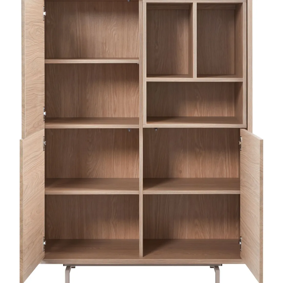 Met een hoogte van 136 cm, breedte van 102 cm en diepte van 45 cm is deze opbergkast een praktische en stijlvolle toevoeging aan je interieur. De kast heeft drie deuren en drie open vakken. Achter elke deur bevindt zich een legplank, ideaal voor het netjes opbergen van spullen. De open vakken zijn perfect om boeken of decoratieve accessoires in uit te stallen. Leuk detail: zet je favoriete items extra in de spotlight met ledstrips op maat (optioneel, tegen meerprijs). Dankzij het push to open systeem open je de lades en deuren eenvoudig met een lichte druk. De deuren zijn daarnaast voorzien van softclose, waardoor ze rustig openen en sluiten. Een klein duwtje bij het sluiten zorgt dat ze netjes dicht gaan. Het meubel wordt grotendeels gemonteerd geleverd; je hoeft alleen de poten nog te bevestigen.