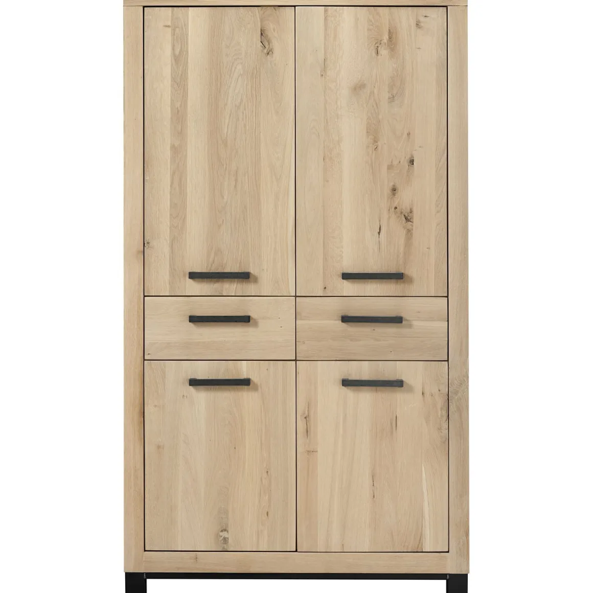 | Uitvoering | Uitgevoerd in grotendeels massief robuust eikenhout geborsteld in de kleur 44.5 ecofix, met 4 deuren en 2 laden. |