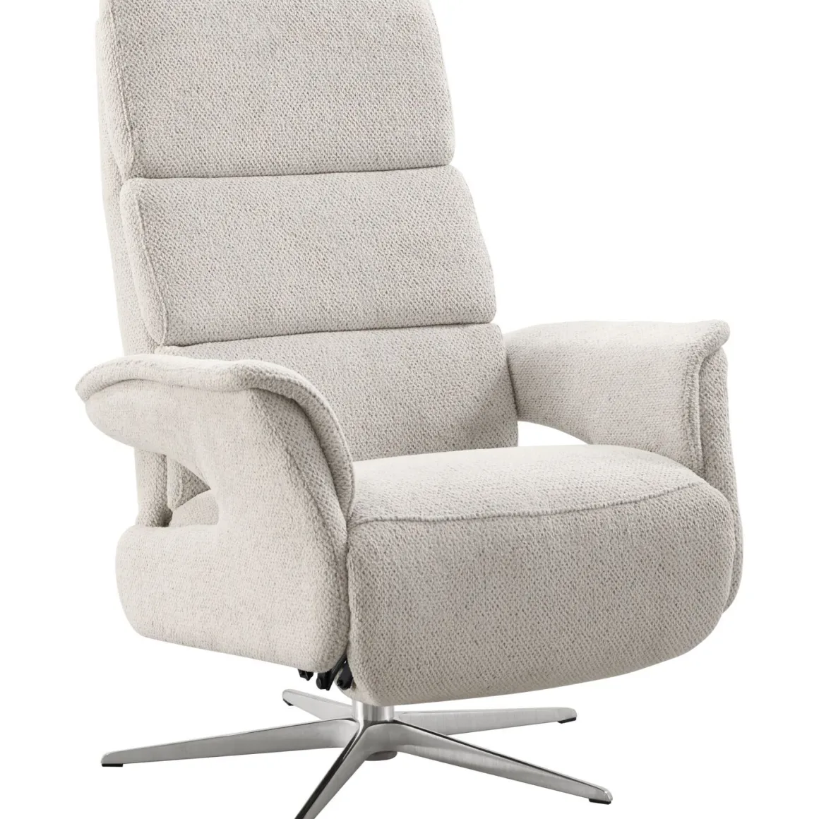 Relaxfauteuil Initio in lichte grijze stof met verstelbare rugleuning en voetensteun