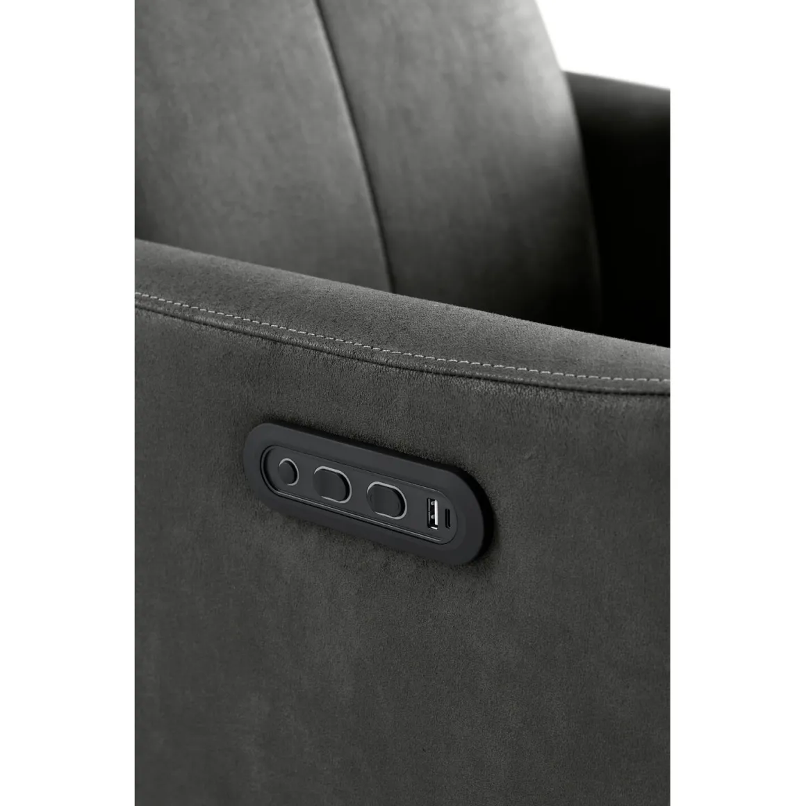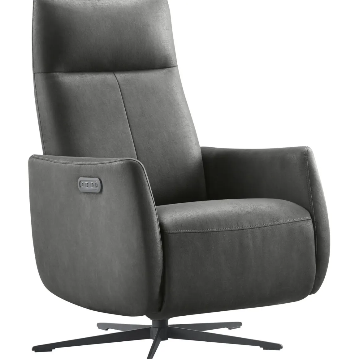 | Uitvoering | Elektrisch verstelbaar d.m.v. 2 motoren, uitgevoerd in microleder bull 67-antraciet met HR-koudschuim in de zitting, HR-koudschuim in de rug en een zwarte metalen 5-teensvoet. |