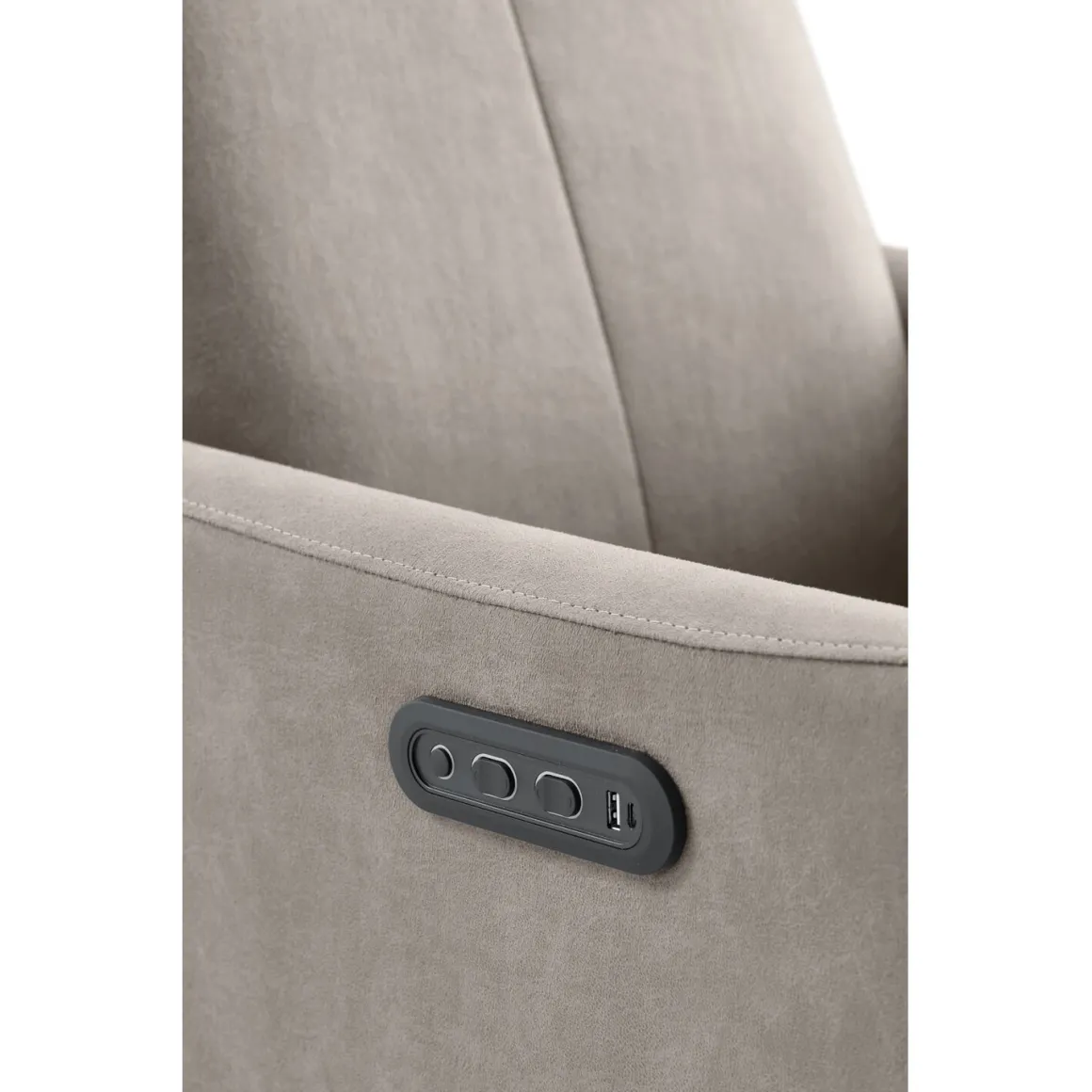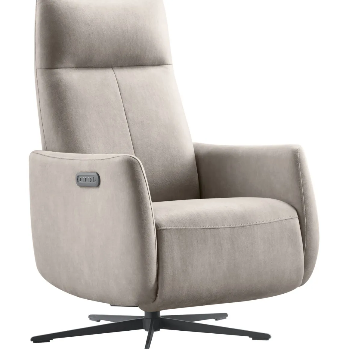 Relaxfauteuil Lanciare in lichtgrijs microleder met elektrische bediening en 360° draaifunctie