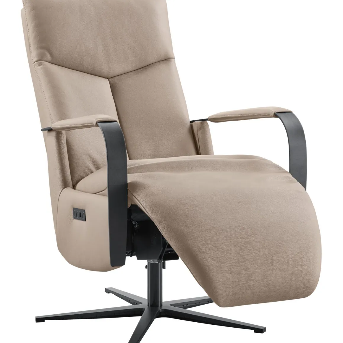 Relaxfauteuil Seduto in naturel beige leder, elektrisch verstelbaar