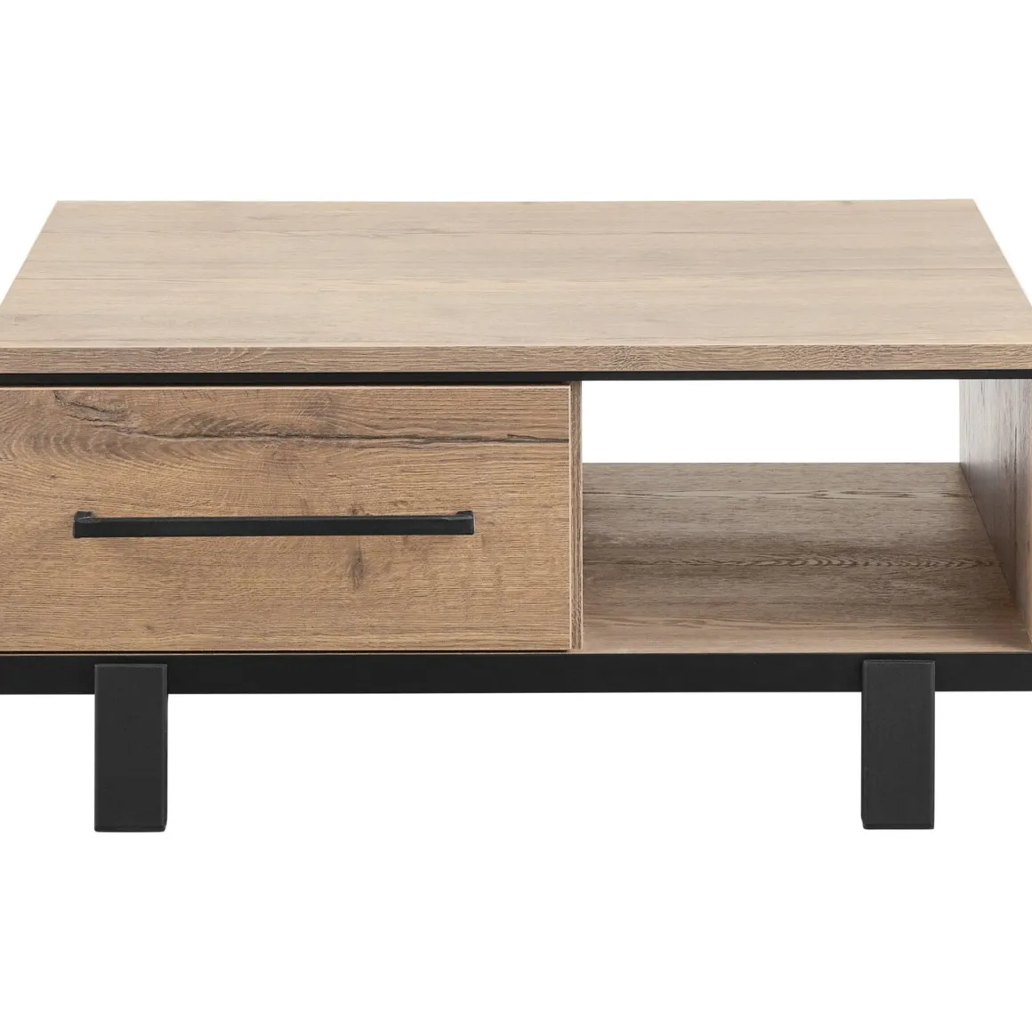 De Adanti salontafel is een trendy tafel met een industriële uitstraling. De warme, lichtbruine kleur en het gepoedercoate zwart metalen frame zorgen voor een unieke sfeer in je woonkamer. Deze robuuste salontafel is afgewerkt met een melamine toplaag. De toplaag ziet eruit als echt hout en heeft zelfs een licht reliëf, waardoor het ook aanvoelt als echt hout. Het materiaal is kras-, slijt- en stootvast, eenvoudig in onderhoud en gebruiksvriendelijk. Hierdoor is de salontafel ook bijzonder geschikt voor gezinnen met (jonge) kinderen.