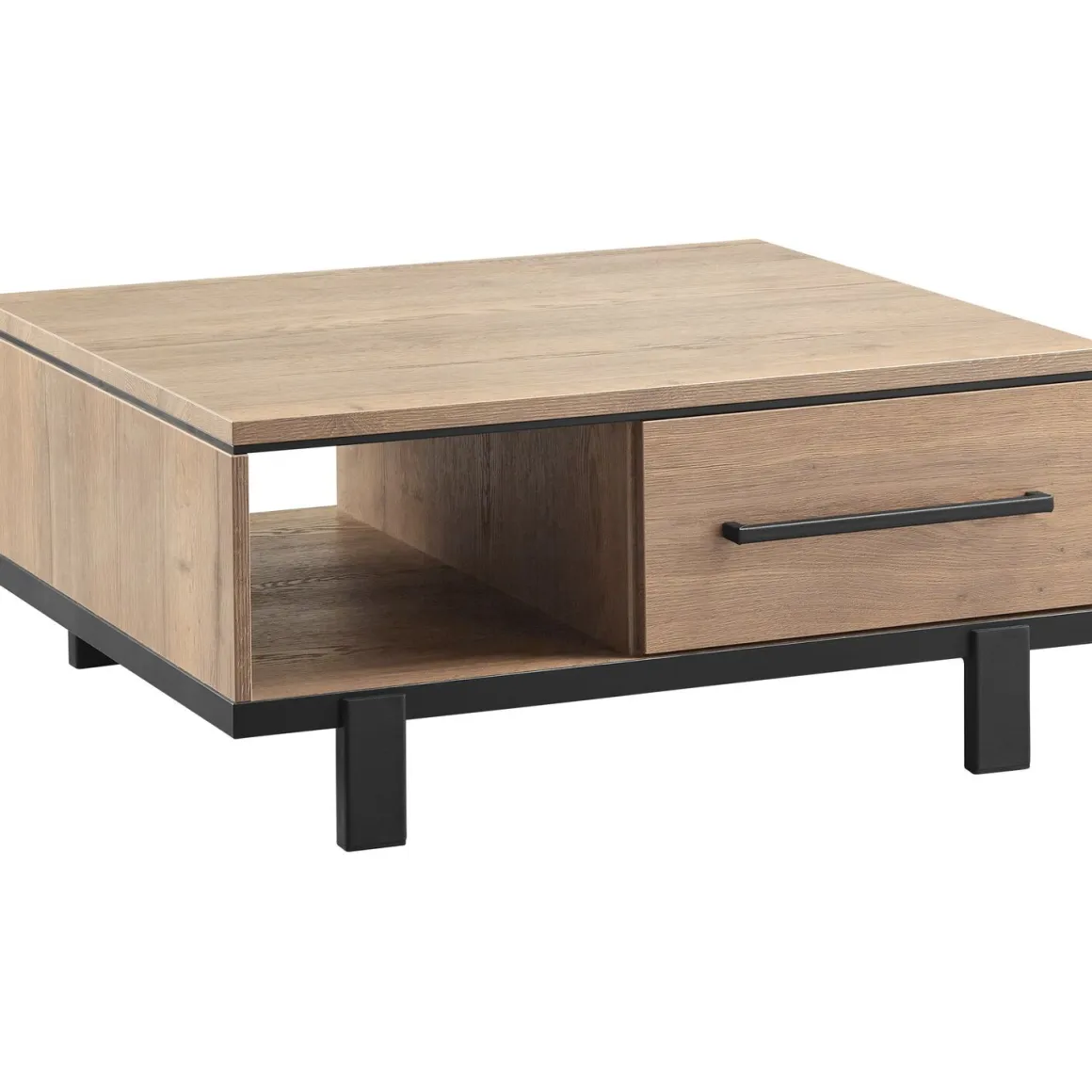 De vierkante tafel is 90 cm breed en 40 cm hoog. Er zit 1 lade in, zodat je genoeg ruimte hebt om bijvoorbeeld onderzetters of afstandsbedieningen uit het zicht op te bergen. De lade is voorzien van een softclose systeem, waardoor deze automatisch zachtjes sluit. Door de praktische afmeting kan je deze tafel gebruiken als bijzettafel naast de bank, of je kan er 2 naast elkaar te zetten voor een speels effect. Het open vak heeft een hoogte van 22,7 cm en een breedte van 37,7 cm.