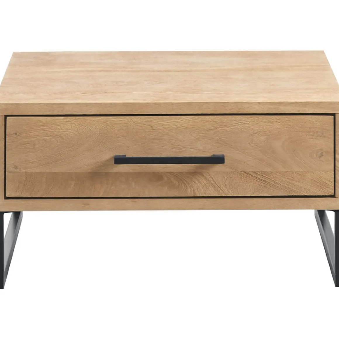 | Uitvoering | Uitgevoerd in gezandstraald mangohout in de kleur warm naturel en een zwart metalen frame, met 1 lade. |