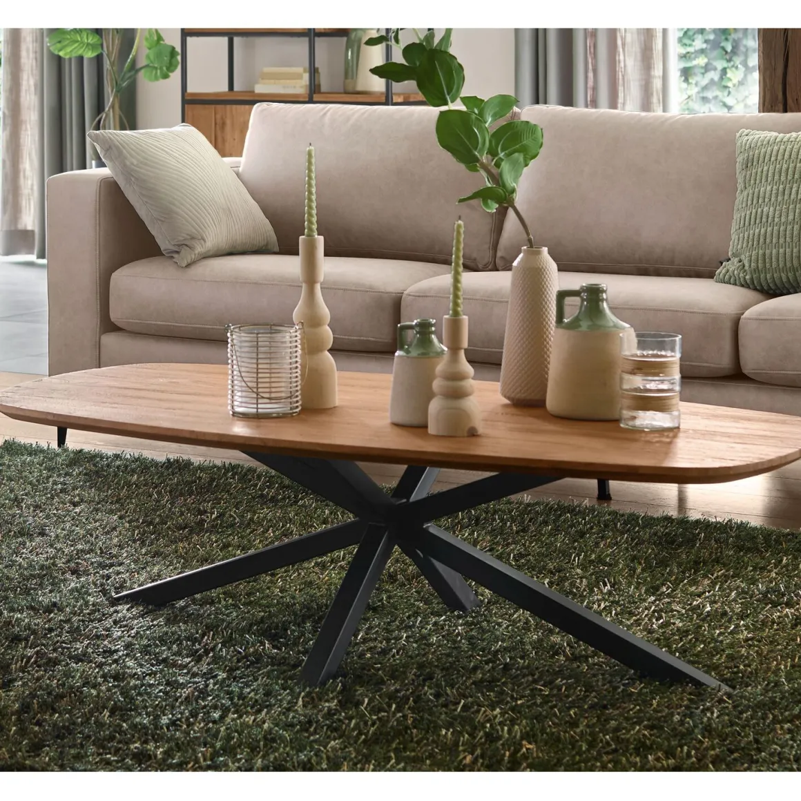 Salontafel Romaro deens ovaal teak mix rough