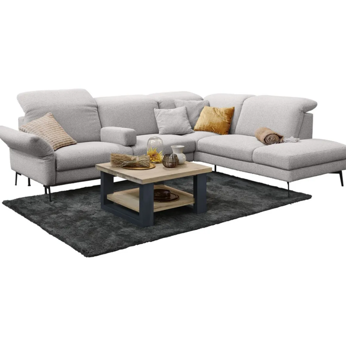 | Uitvoering | Uitgevoerd in massief, robuust geborsteld eiken in de kleur 67.5 naturel grey en RAL-7021 metalen poten. |